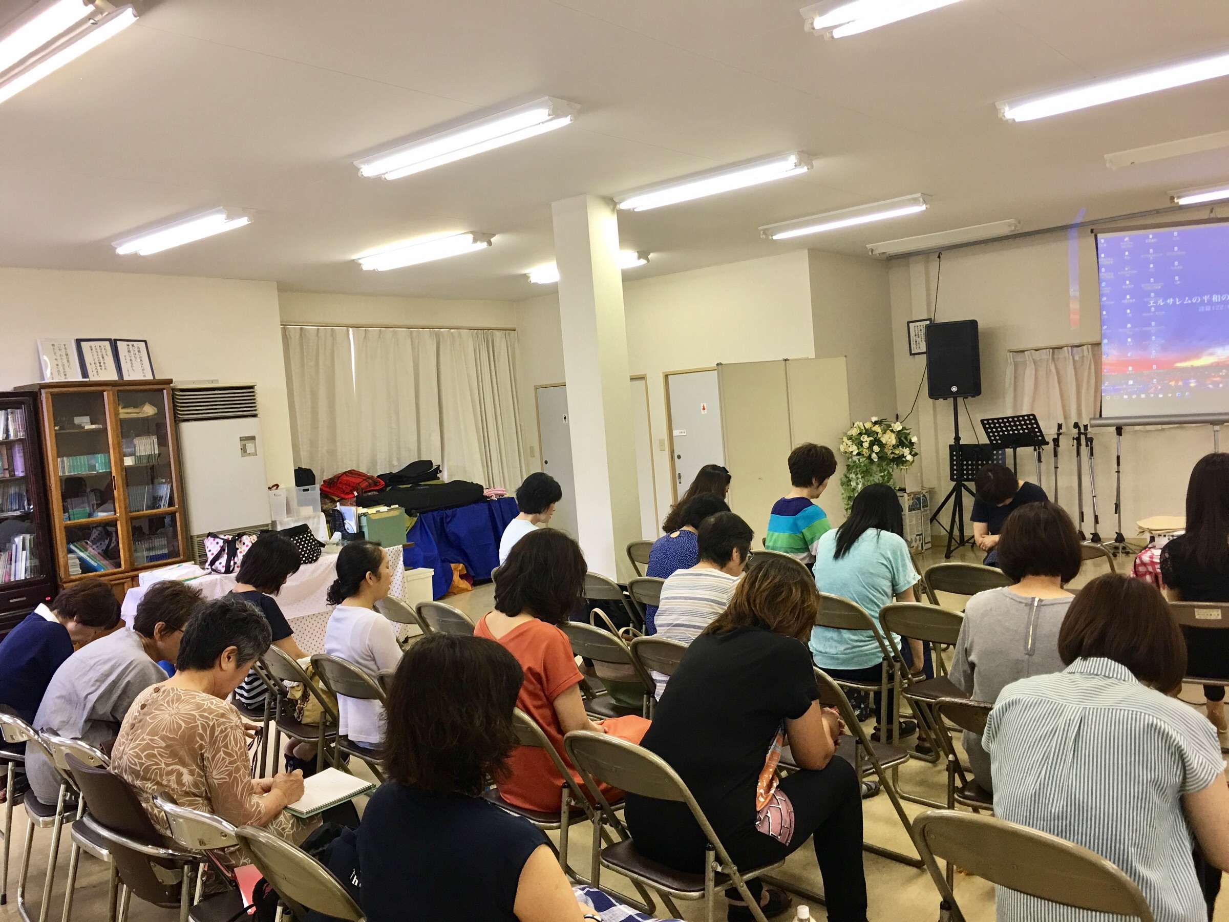 神学校が行なわれています。 最初に全体でお祈りをしています。 四日市 Chikumi
