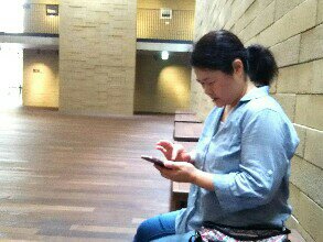 ブログをアップ中のエステルさんです。今日は、この新しい文化芸術センターでスプレンダーの練習です。