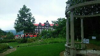 イングリッシュガーデンからの眺望。後方にはホテルが見えます。スバラシイ景色!!