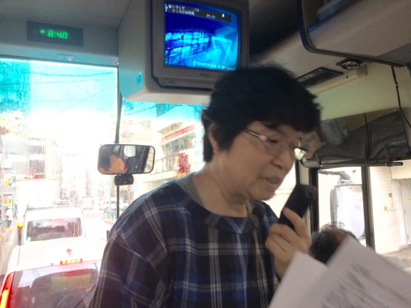 バススタッフの和香子さんがスケジュールを説明しています。 小岩教会 ヨセフ