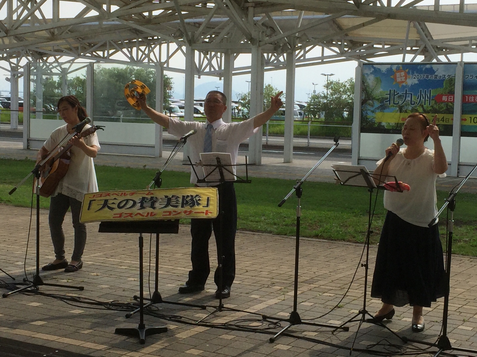みんな、汗ダラダラの中でのコンサートでした。でも、多くの方々が、飛行機の待ち時間、聞いて行かれました。