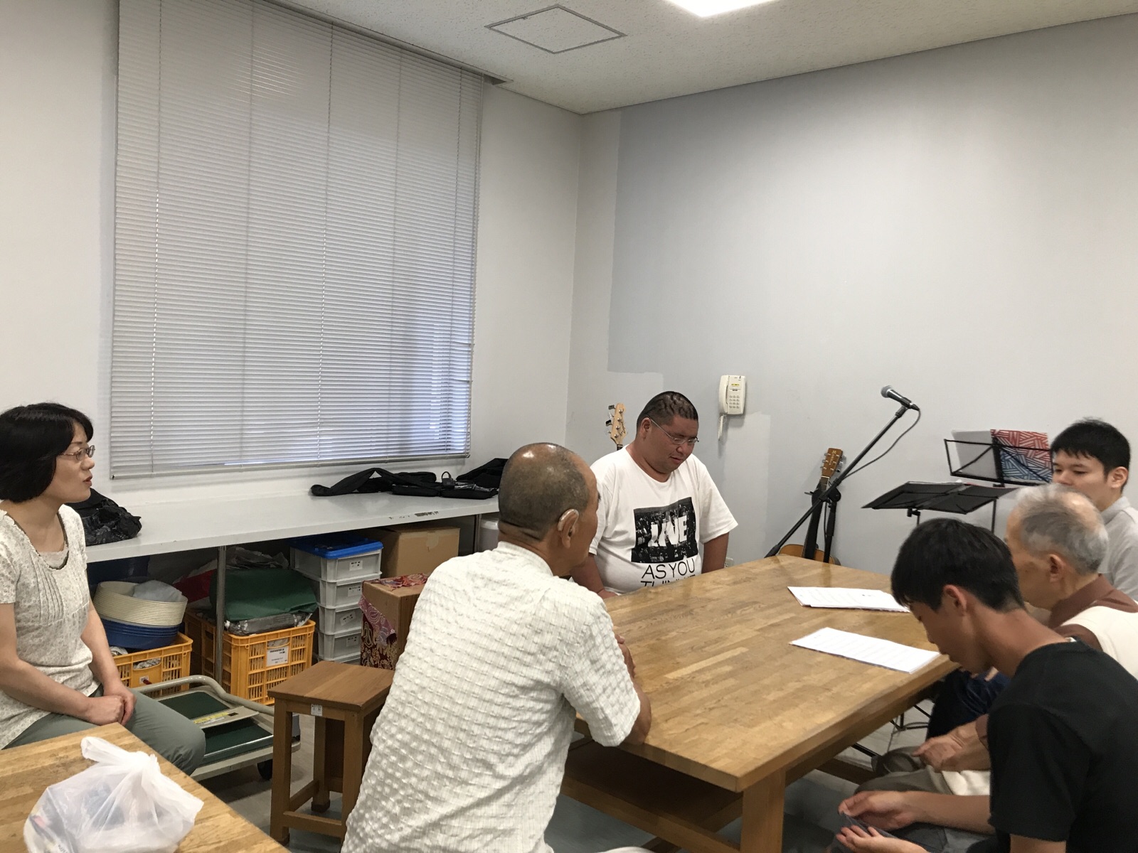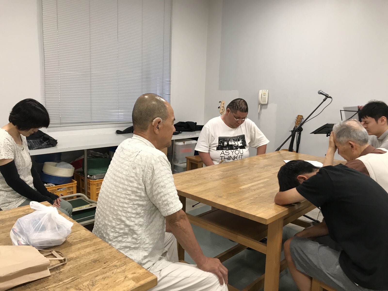 お祈り会、熱い祈りが捧げられる中で約1名が…こう見えて起きてます。きっとイエス様の愛に満たされてリラックスしてます。 東フィラデルフィヤ シオン