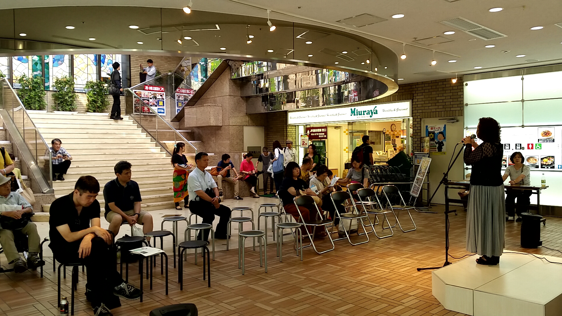 ラムラ飯田橋のわくわくセールの中のライブとして行われています。 涼しくなりつつ⁉︎あるので、歌声を聞いて人が増えて来ました。 satoko