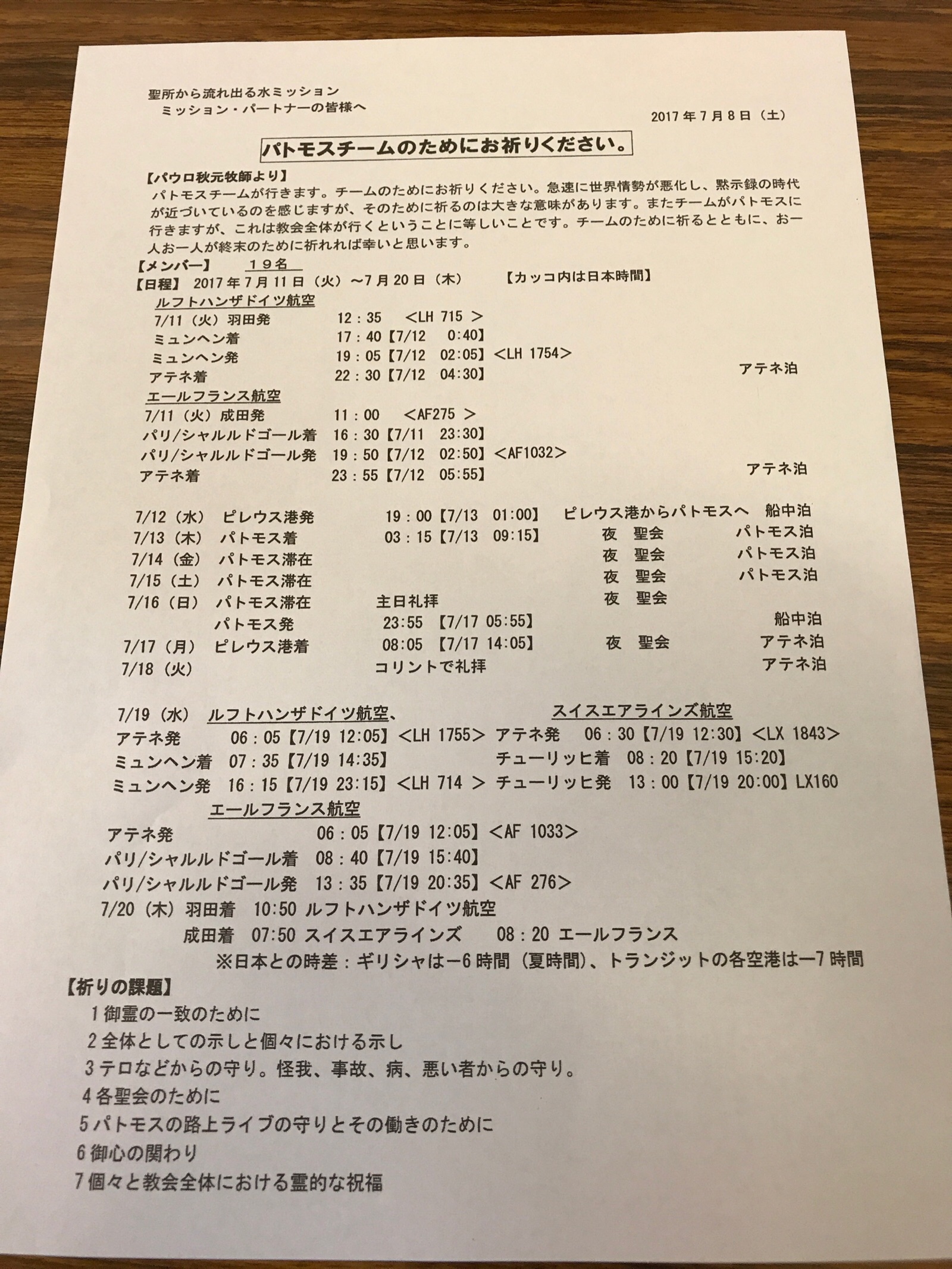 パトモスチームの祈りの課題をいただきました! ヤマなか
