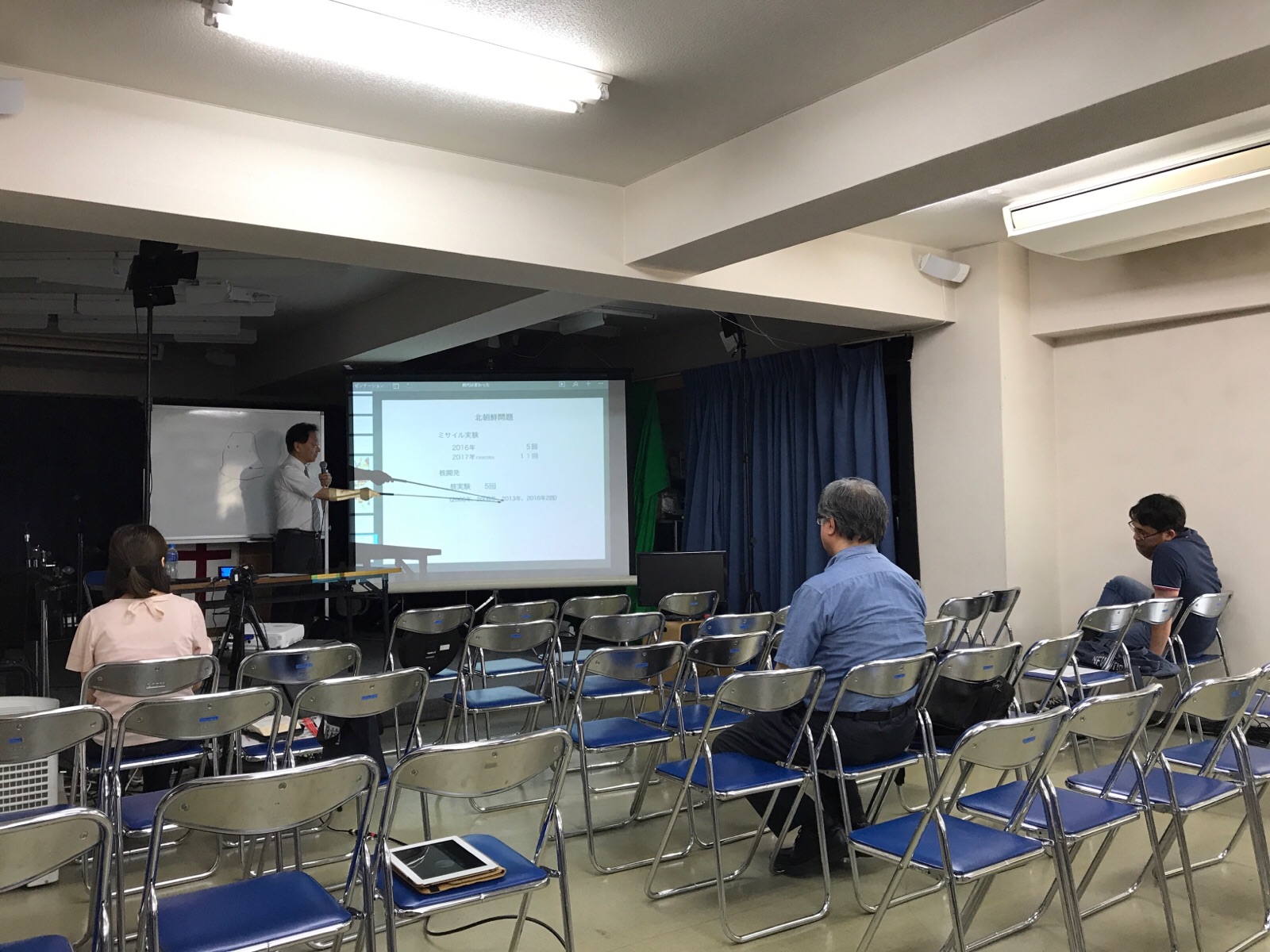 外壁タイルの浮きチェック作業からの語りかけのお話し中の様子です!
