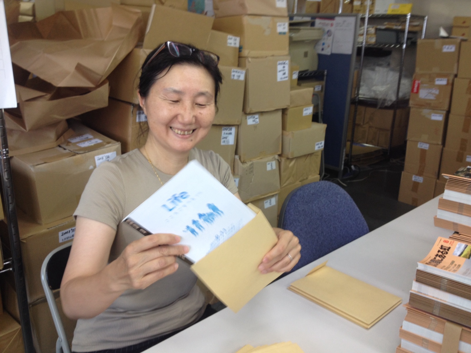みき子さんは、暑い中をチケット屋さんに行ってくれています。発送用の切手をお得にゲットします。 kato