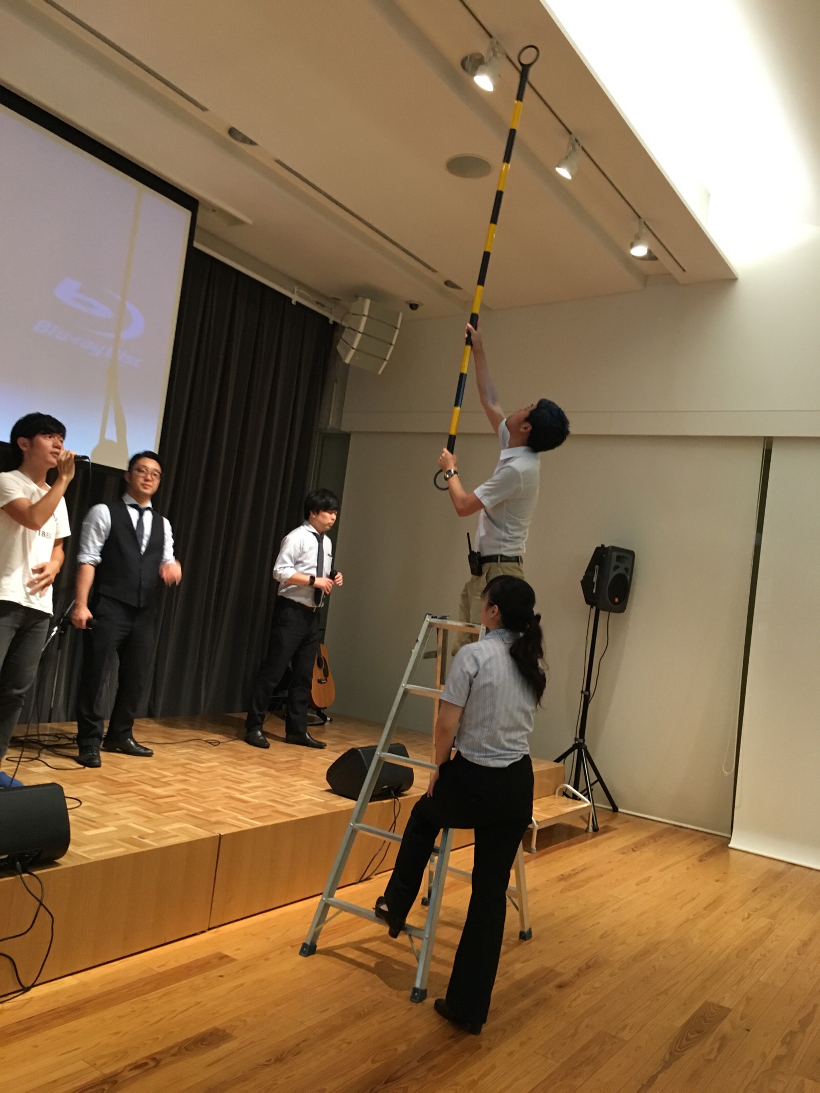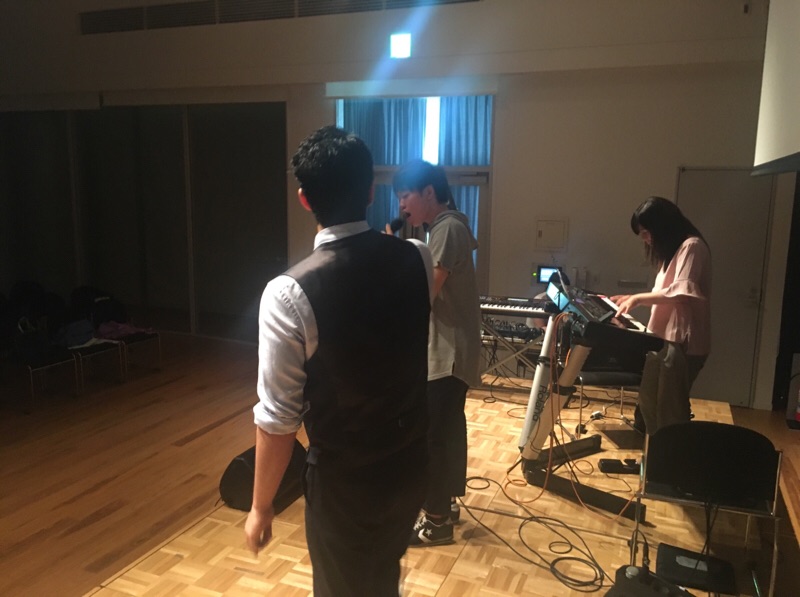 リハ中ですが、照明を調整してもらっています。でも、あれって工事のやつですよね …。 TrueVine 谷口