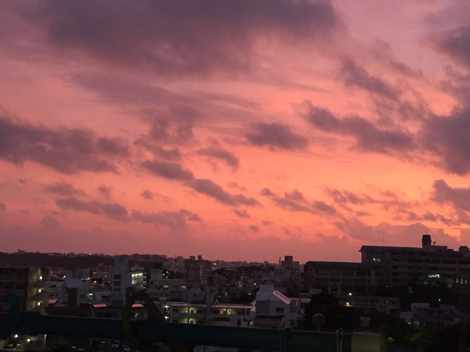 台風の影響でしょうか昨日も今日も真っ赤な空です。沖縄エルサレム sueko