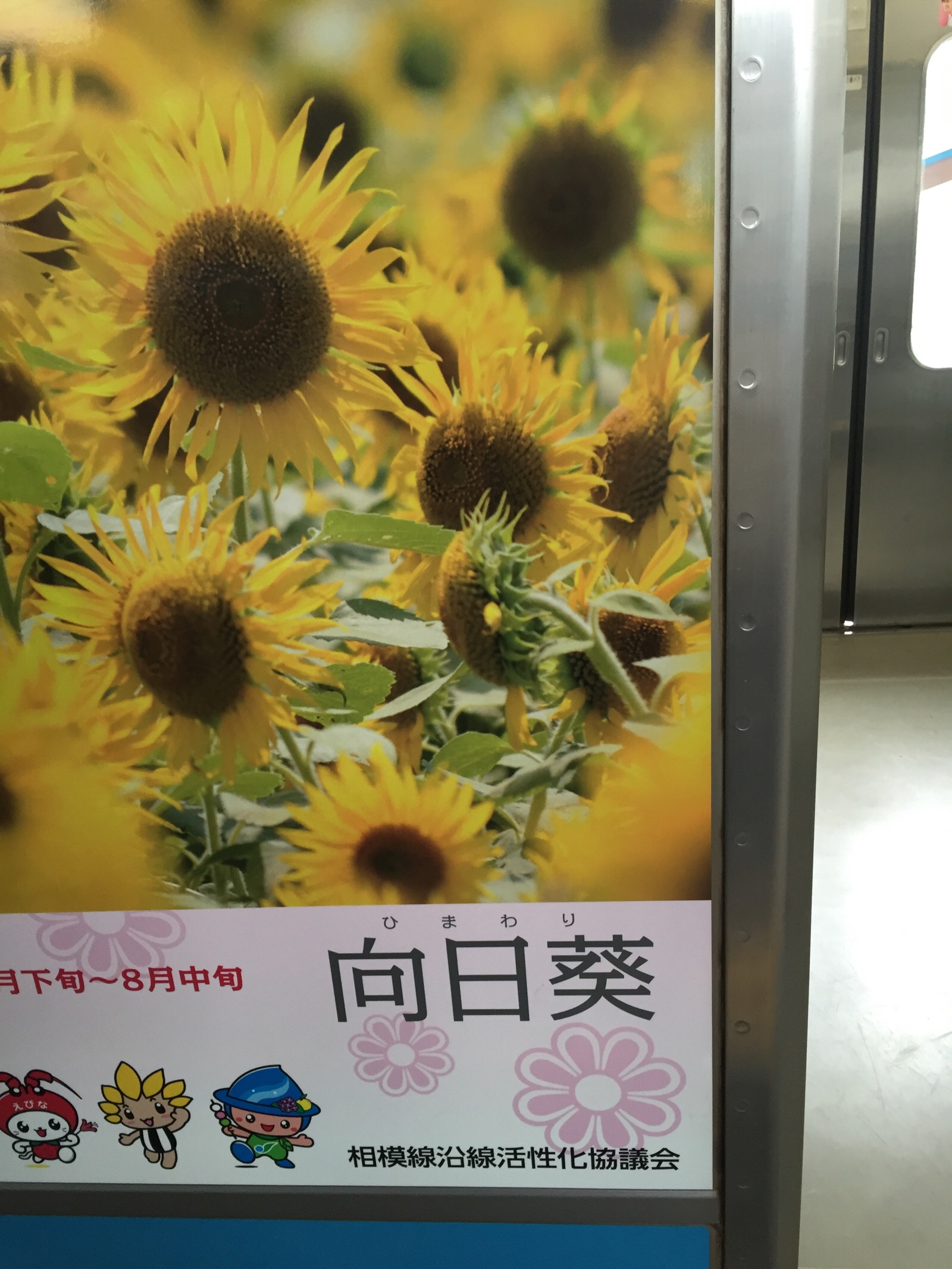 相模線の車輌の広告。ひまわりは向日葵と書くのですね。
