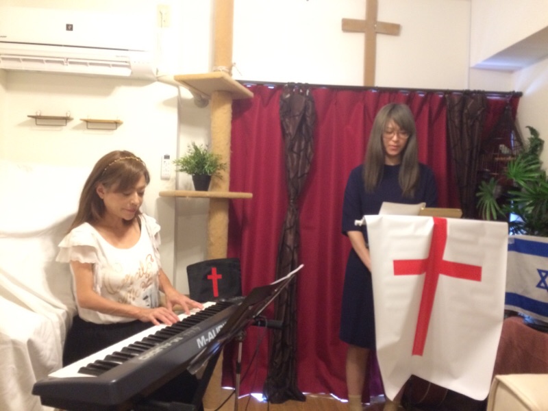 奏楽はエステルさん。司会は光さんで。本日の夜は新宿で東京カリスマ聖会です。 小岩 三本松