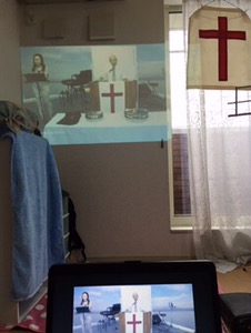 今日の英語礼拝は会堂のクーラーが壊れているため、CSの部屋でしています! 四日市
