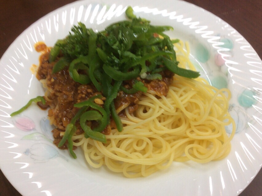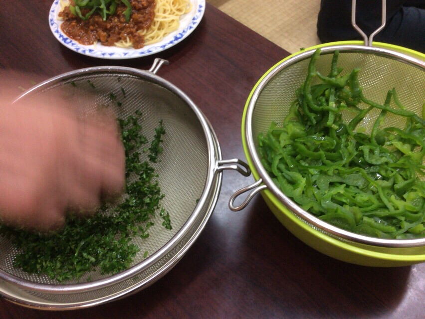 小代さんのアドバイスで、ミートソースにピーマンの種を入れました。