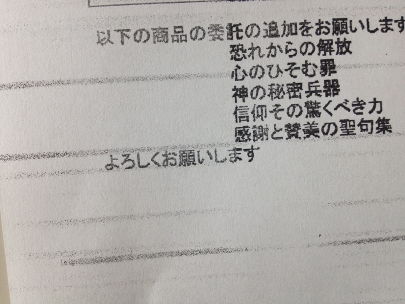 委託先から売れた分の補充のご注文がありました。感謝します。 kato