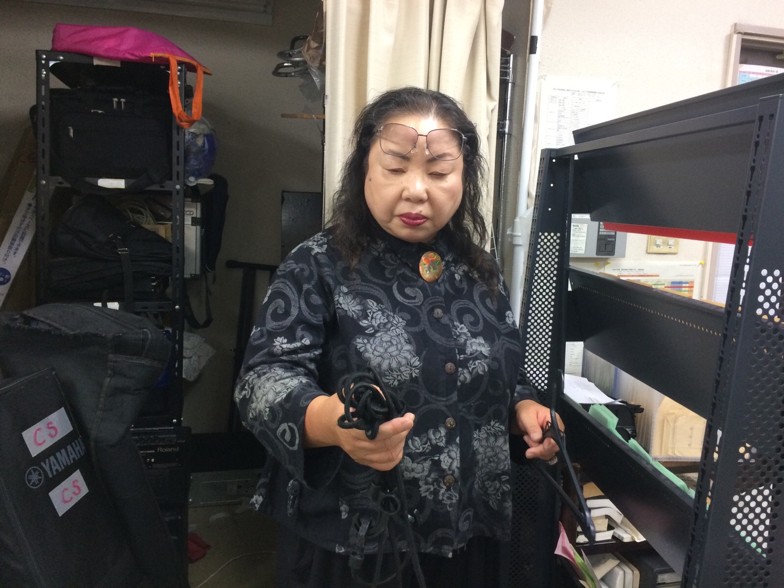 会堂の一画を整理整頓されてます。まどかさん。 ミカエル