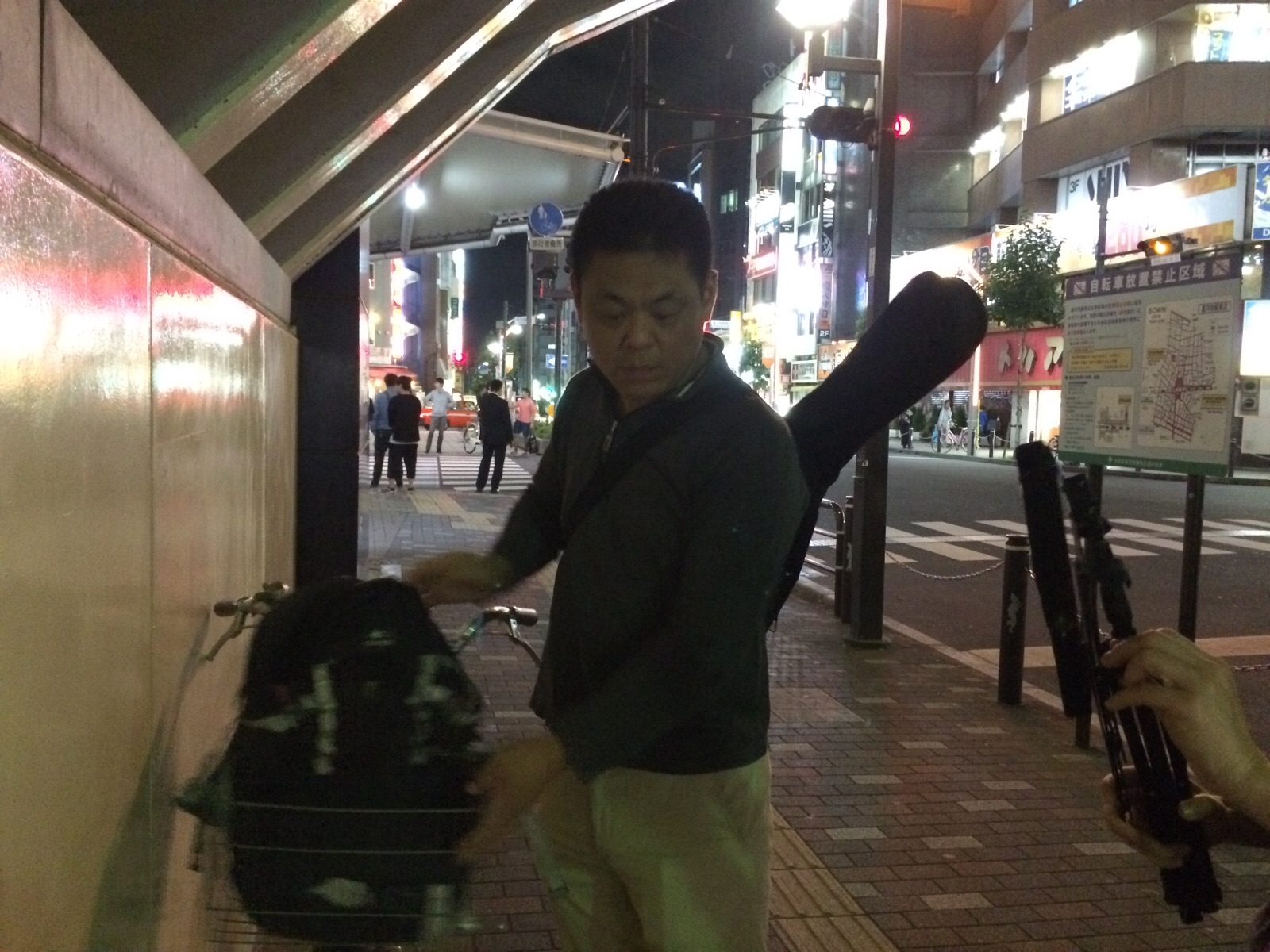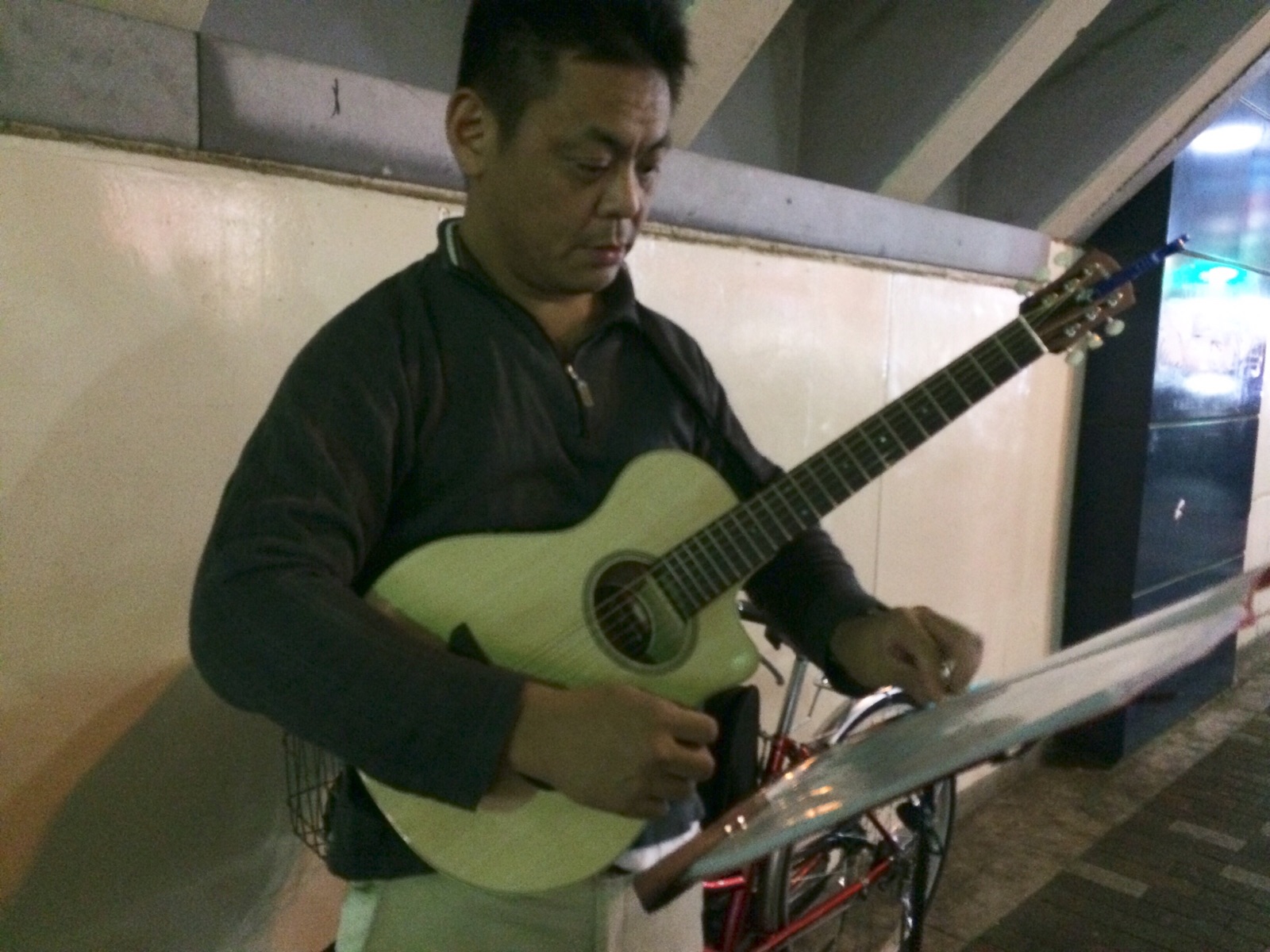 今日の路上賛美の準備してる益川さん。用心棒兼ギターをしていただいてます。最近は、一緒に歌ってます。 なぜだか。 ありがとうございます。 ミカエル