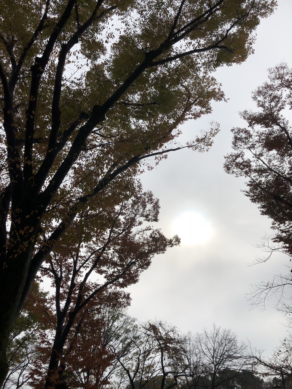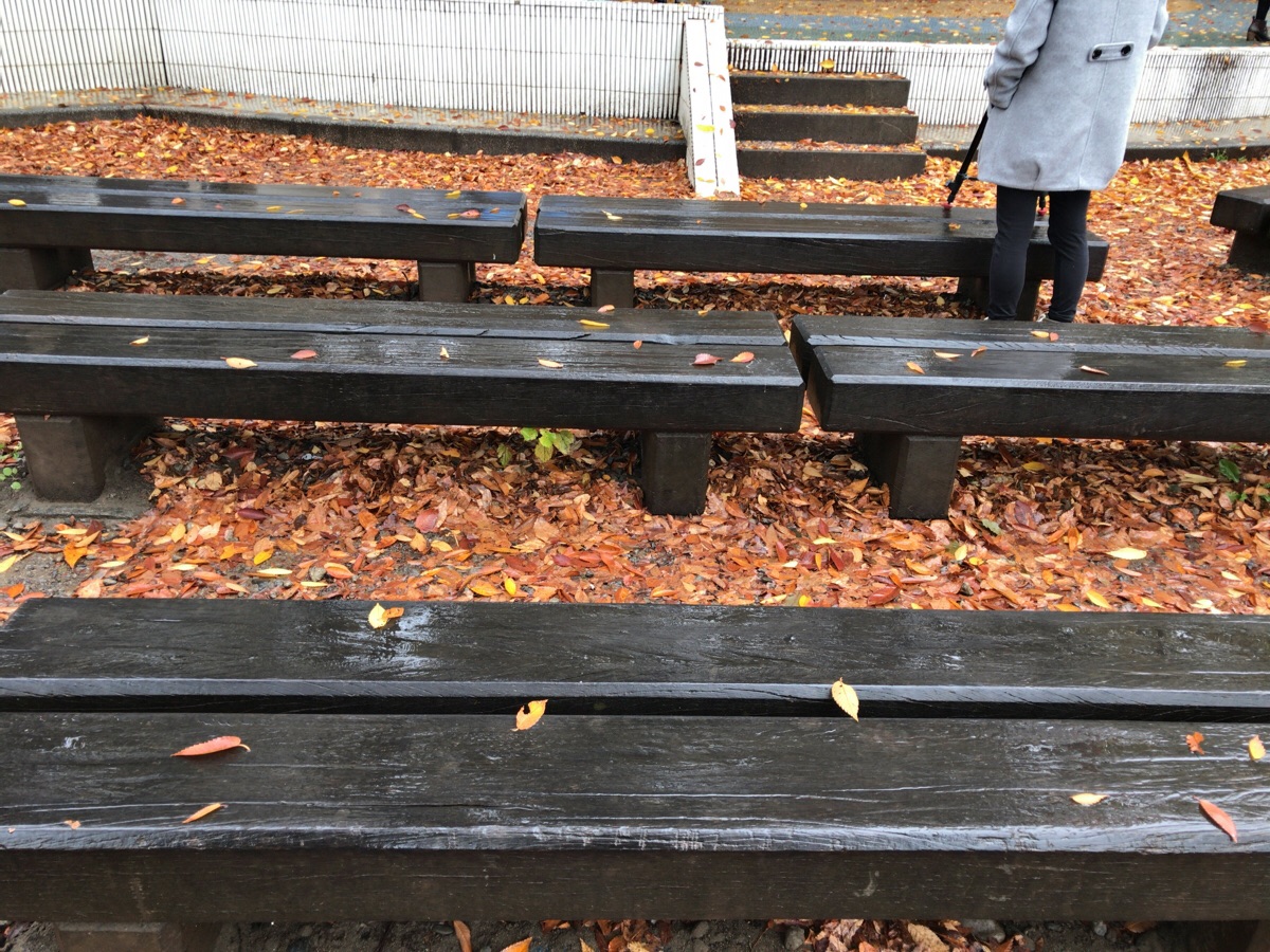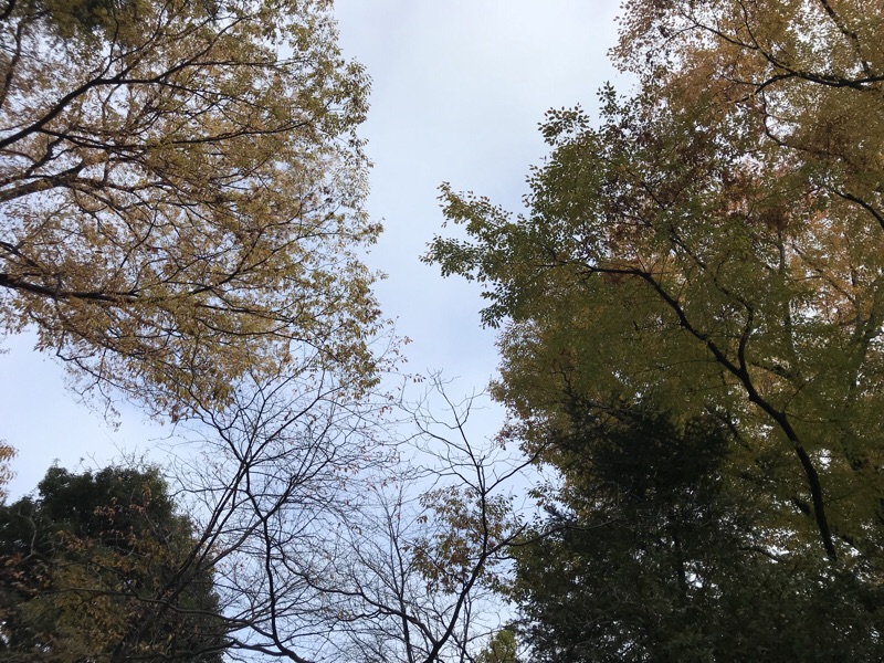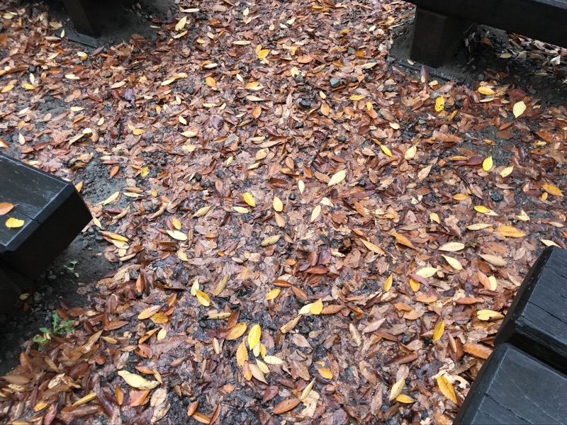 時おり、大量の落ち葉と水滴が上から落ちてきます。でも空気は乾いてきています。