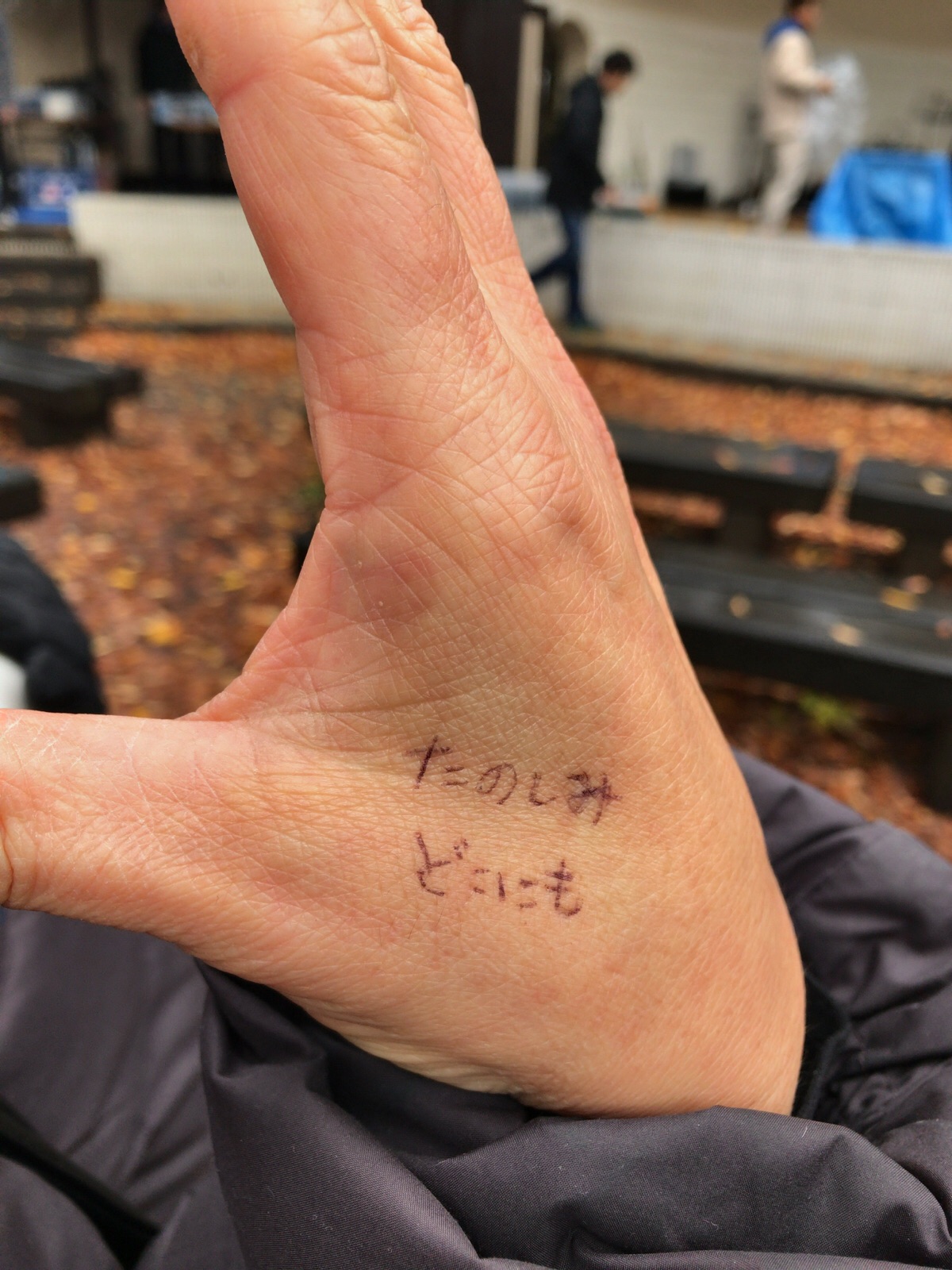 歌詞の出だしを手に書いています。