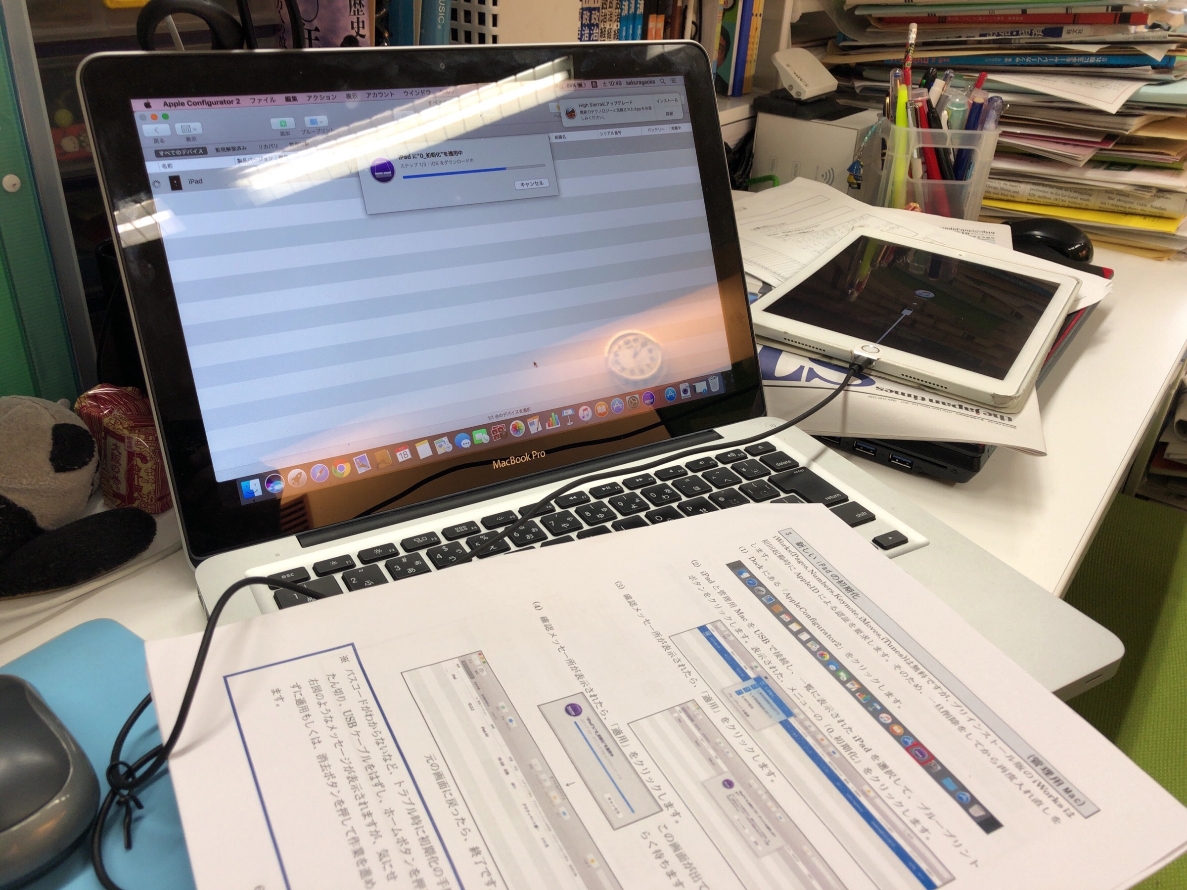 スタッフはいま池袋で待機中のよう。私はいまiPadの設定作業中。教員の仕事とは思えない仕事です… テモテ