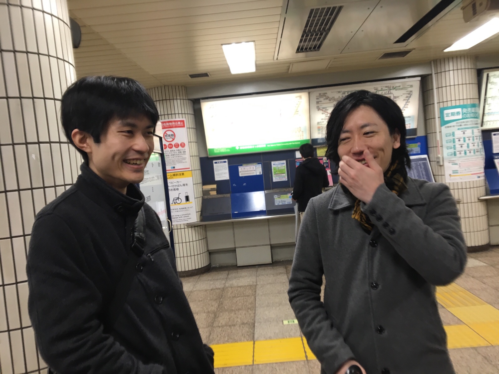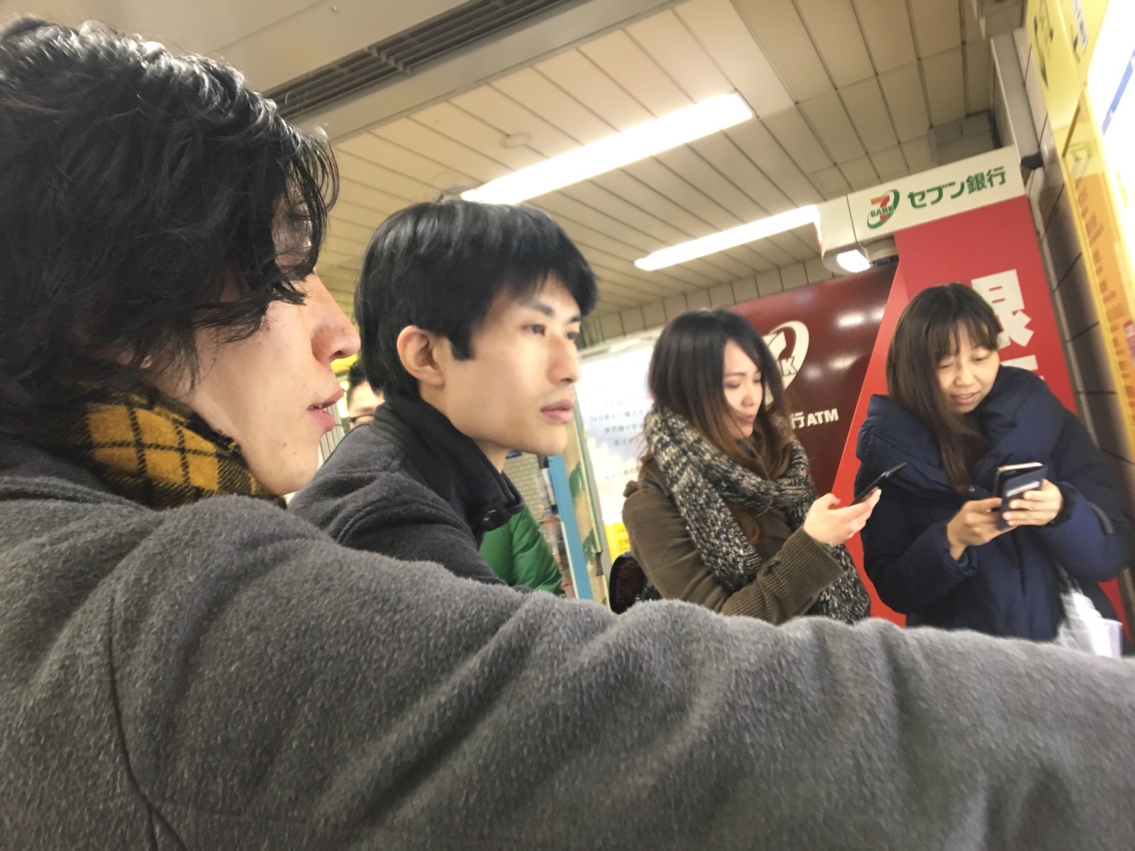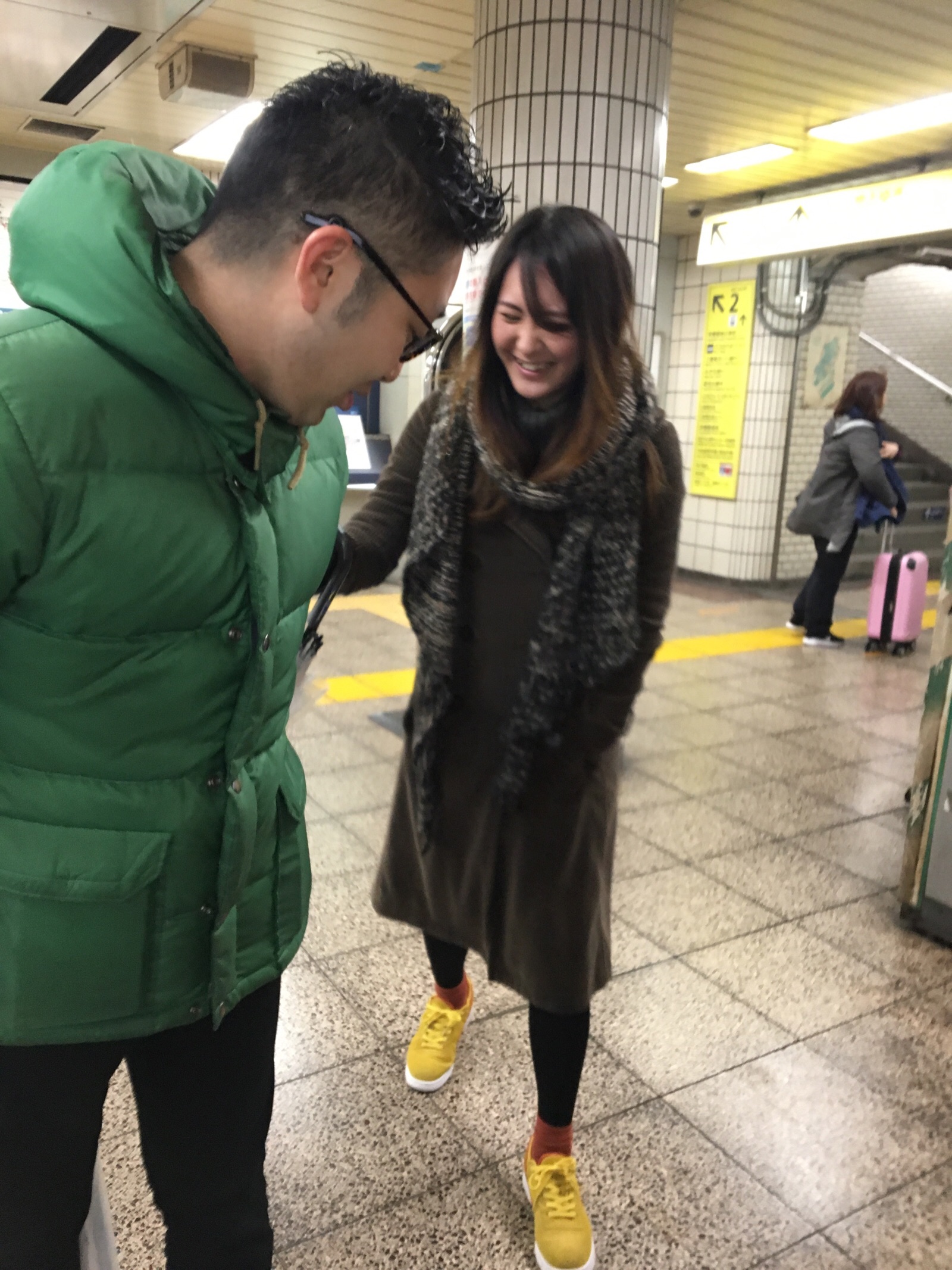 まゆなちゃん到着〜。えっ?やっぱあっちで待ってたの?^ – ^築地駅なかなかわかりにくいかも。