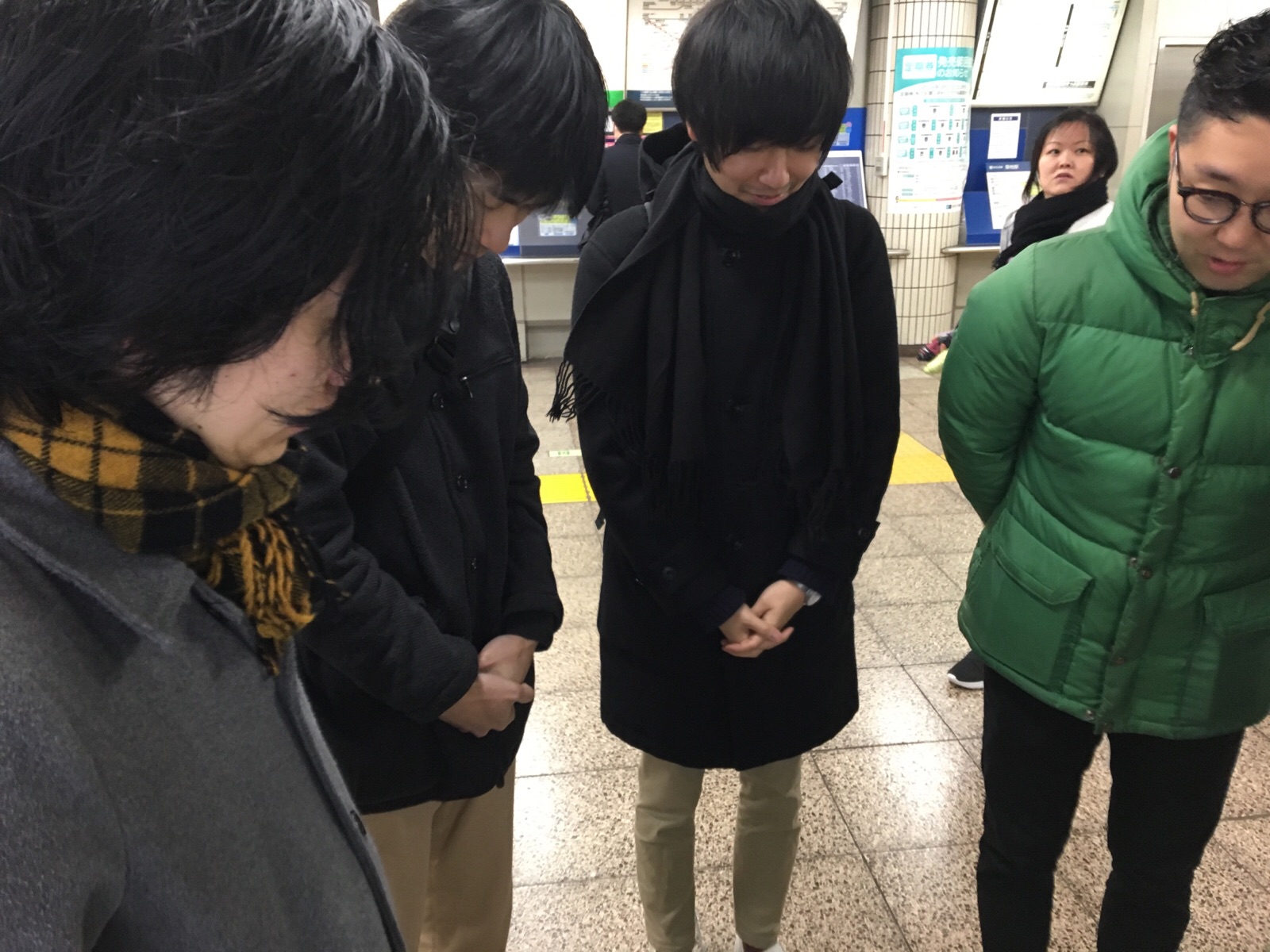 ヨハネさんの導きで神様にお祈りの時。いよいよ築地の町を行きます!