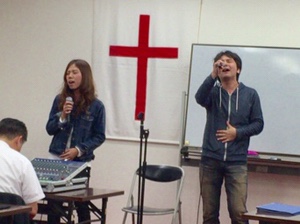先ずは牧師の森本さんの導きで一曲賛美をささげます。