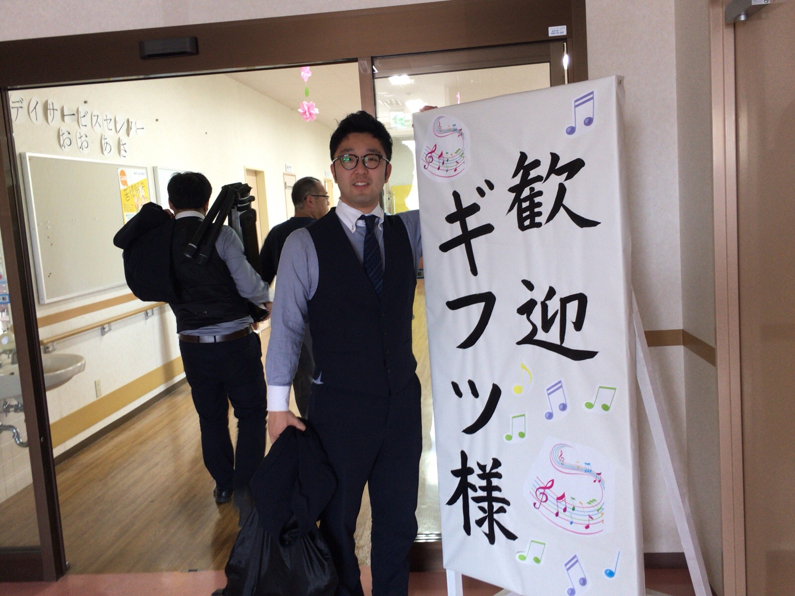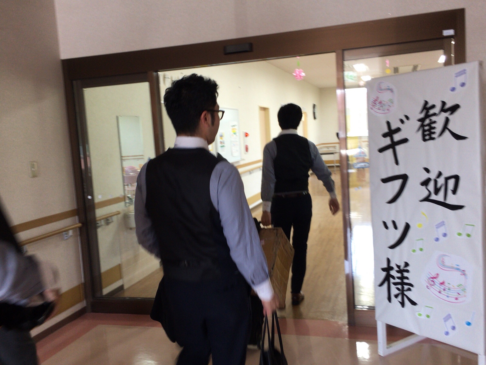 施設でのコンサートに向かいます。