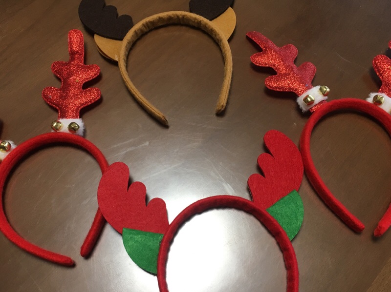 トナカイグッズ、男子も恥ずかしがらずに着けています。