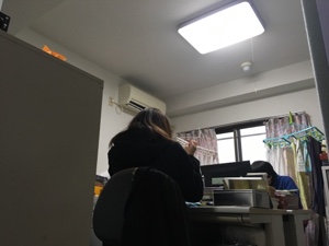 皆さん、白馬スネルゴイキャンプの作業されてます。机の上には個人情報とかもあるので、ちょっと下から…一番手前は、ラベイユのまりちゃんです。