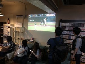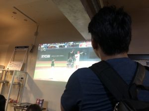 広島なのでやはりというか当然カープ戦がスクリーンで映されてます。