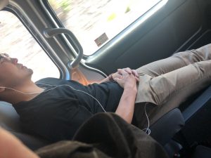 睡魔との戦いに勝利した男の後ろ姿。 寝ます。 光