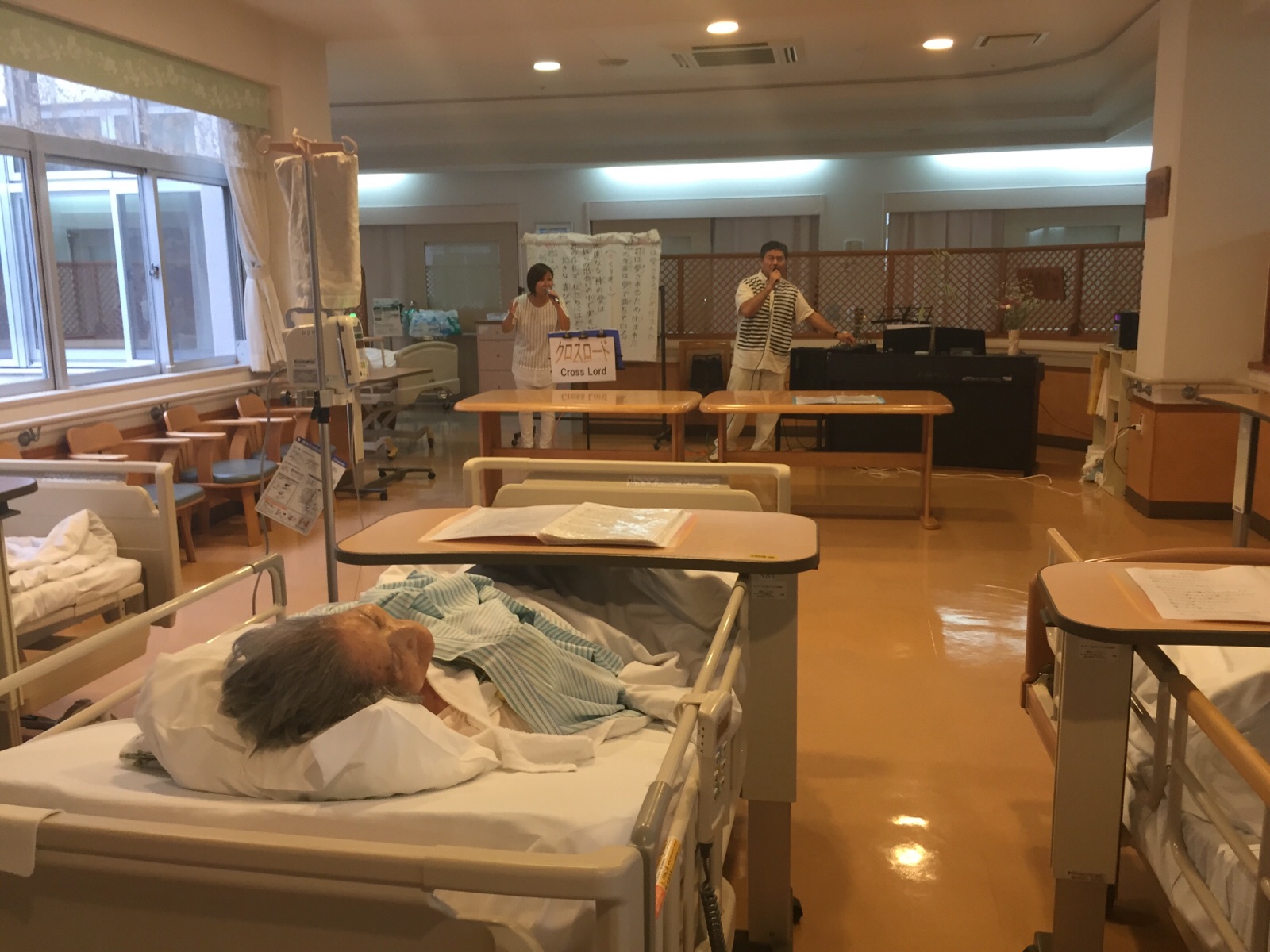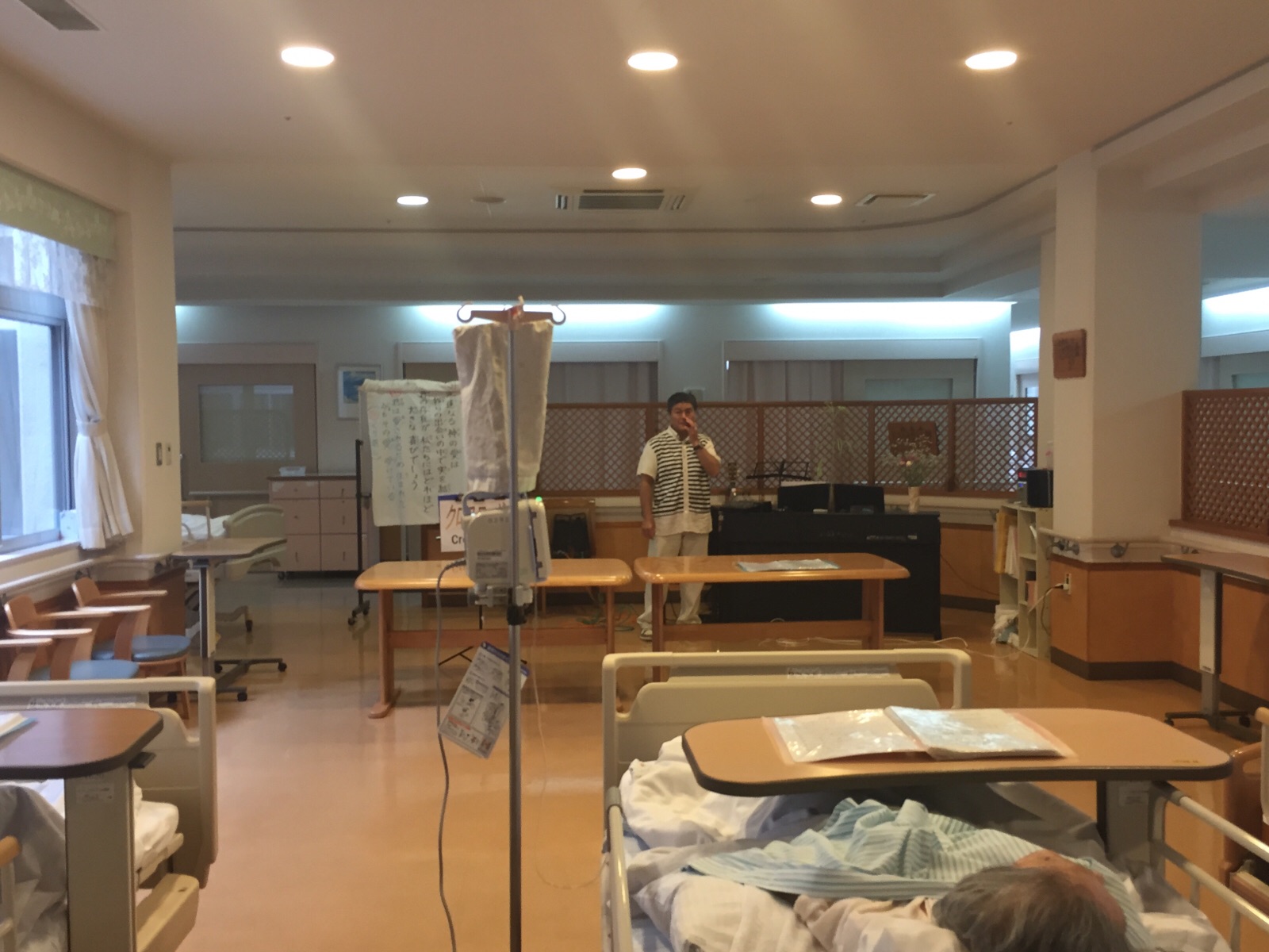 先月まで車椅子だった方々が ベッドでデイルームに出できてくださいました。 また、お部屋で聴いて下さっていました。一曲一曲力を振り絞って拍手くださり 本当に感謝でした!