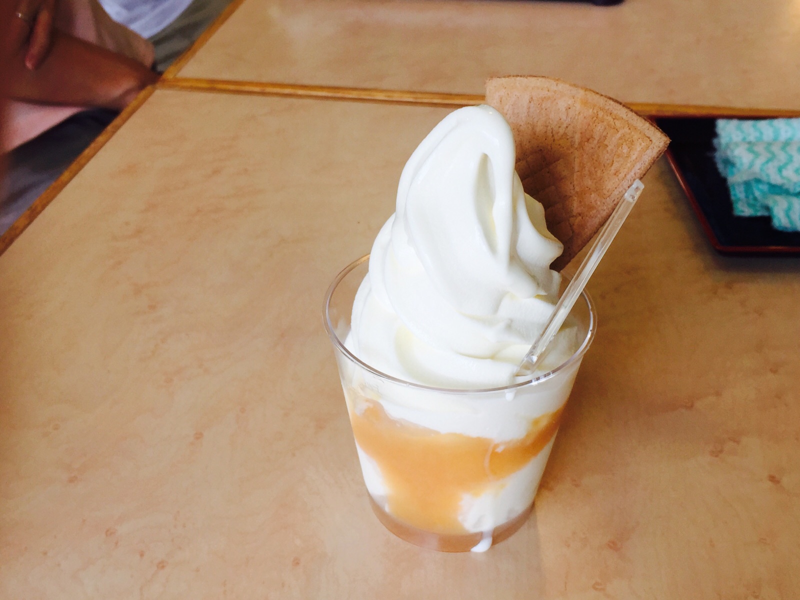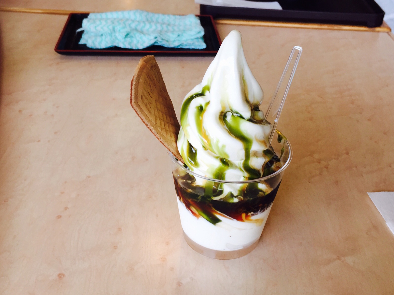 美味しい!白桃ソフトと抹茶黒蜜ソフトです‼︎