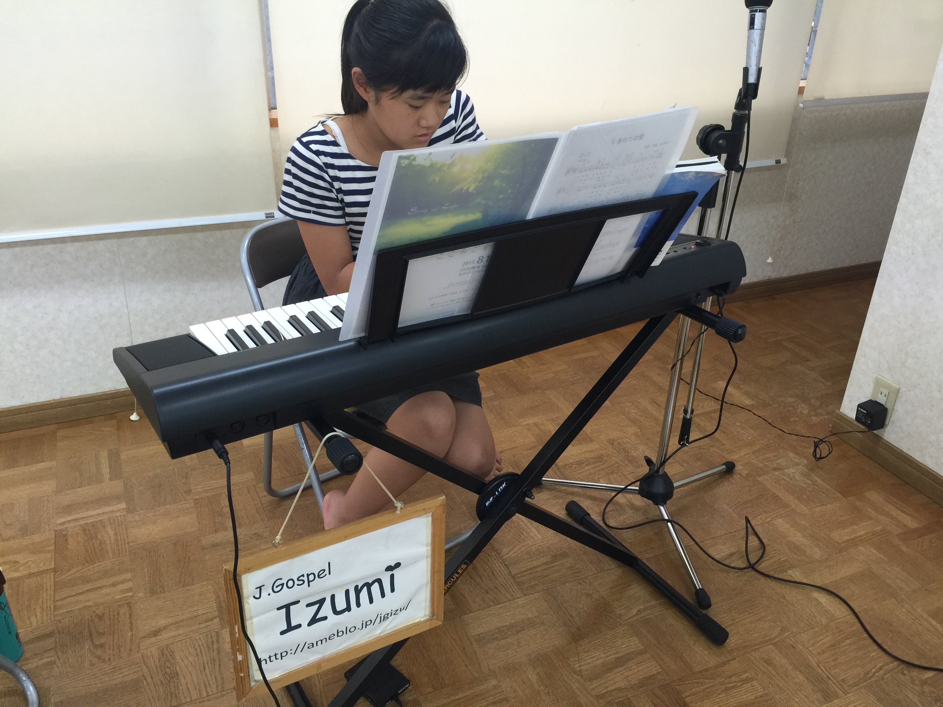 月末日曜の夜はゴスペルライブです◡̈⃝ 写真が撮れなかったので、終わった後に娘が練習しているところを♪