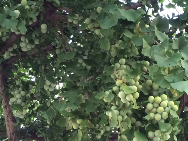 良く見ると銀杏の実がびっしりとなっていた。重くて枝が下がっているようだ。