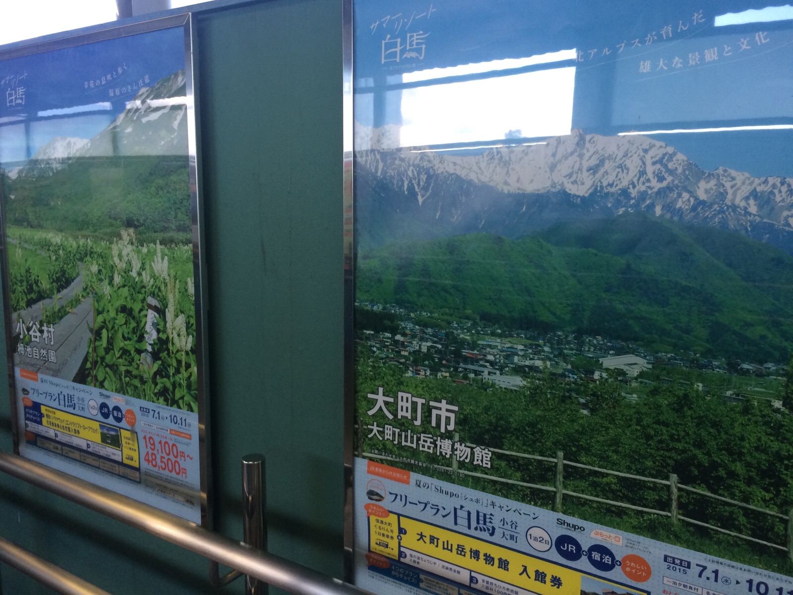 JR構内は、四日市も名古屋も白馬案内いっぱーい! 四日市シオン教会 E.M