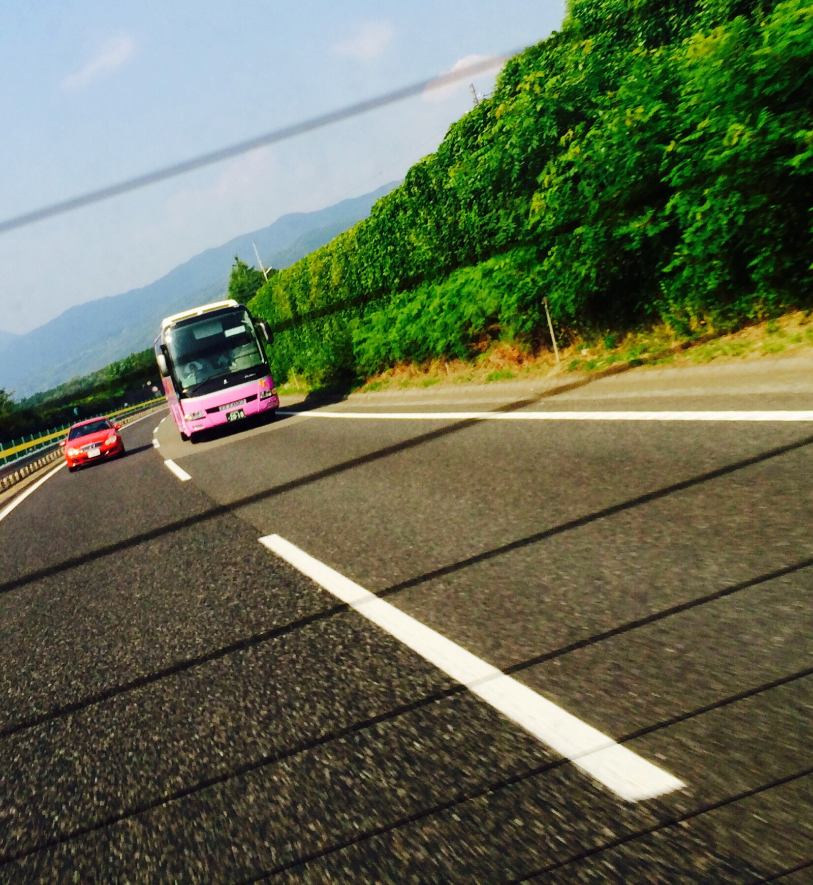 このド派手なピンクのバスは…!! 一時間程前に出た関西バスに追いつき、追い越してしまった森家号…( ̄▽ ̄) 神戸 shion