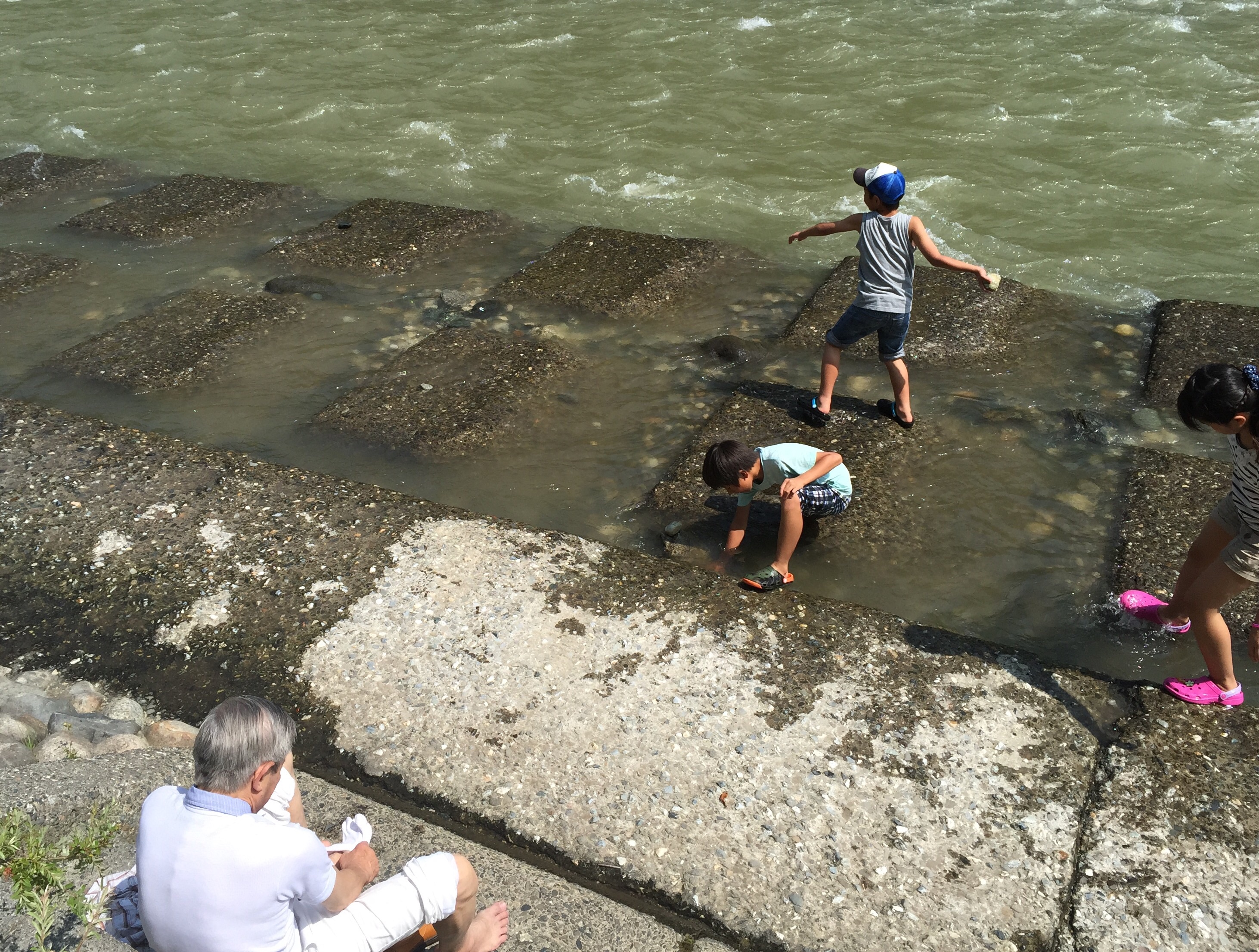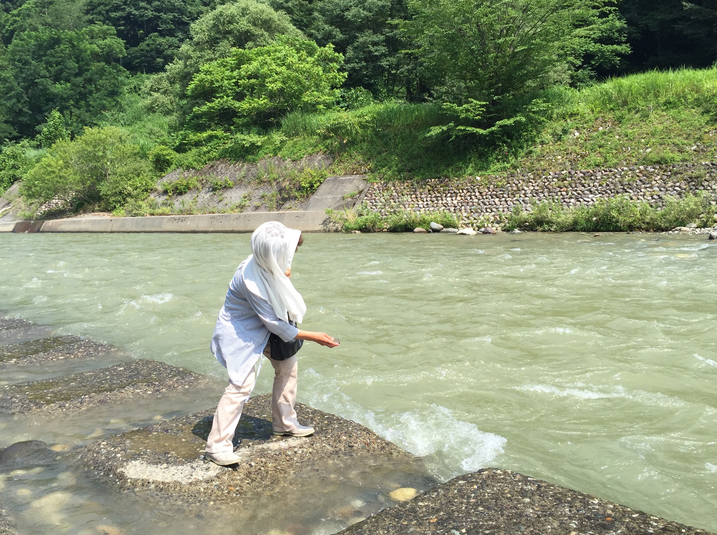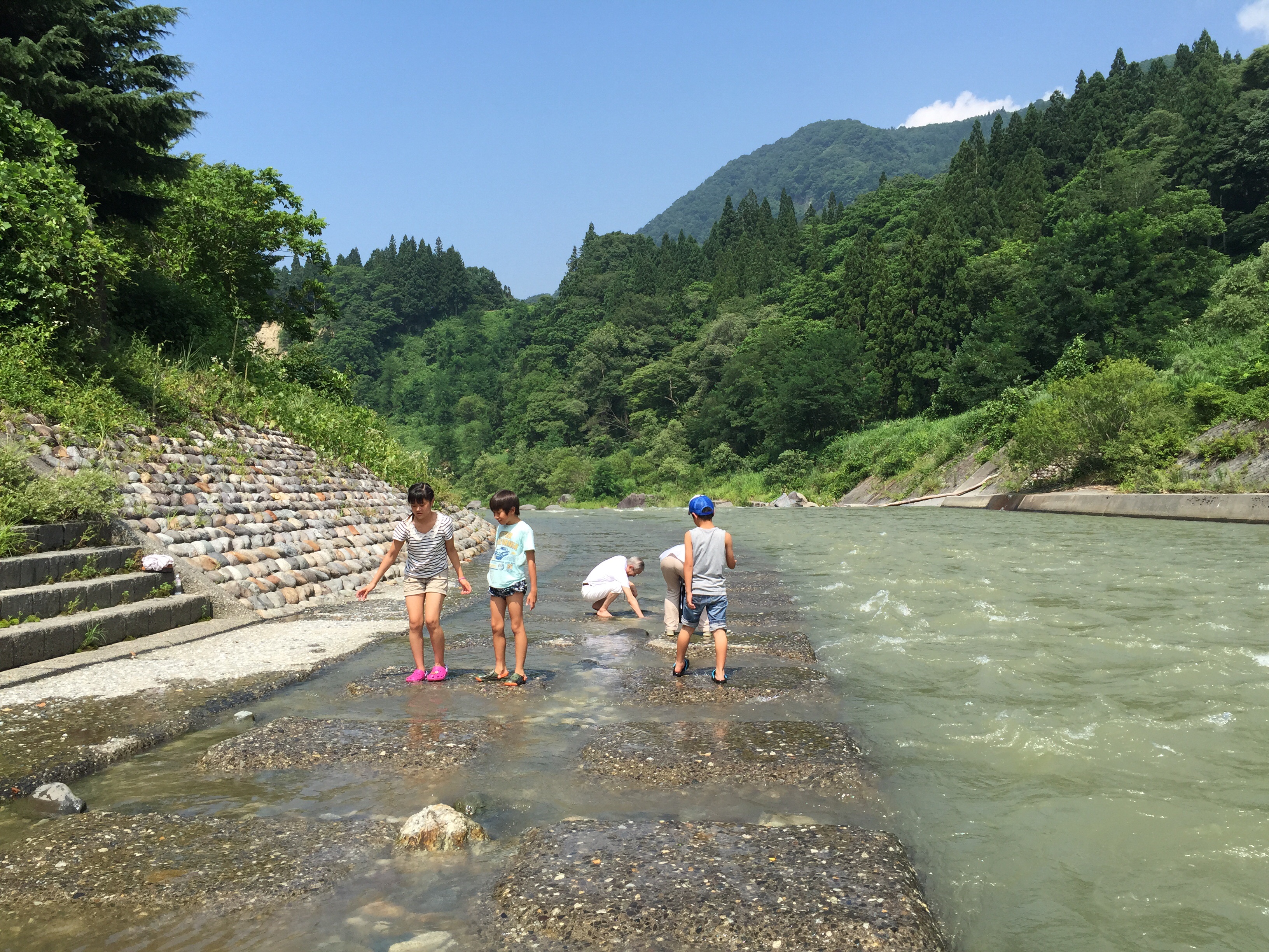 川で水切りして一遊び♫ なかなかお家には着きません?!