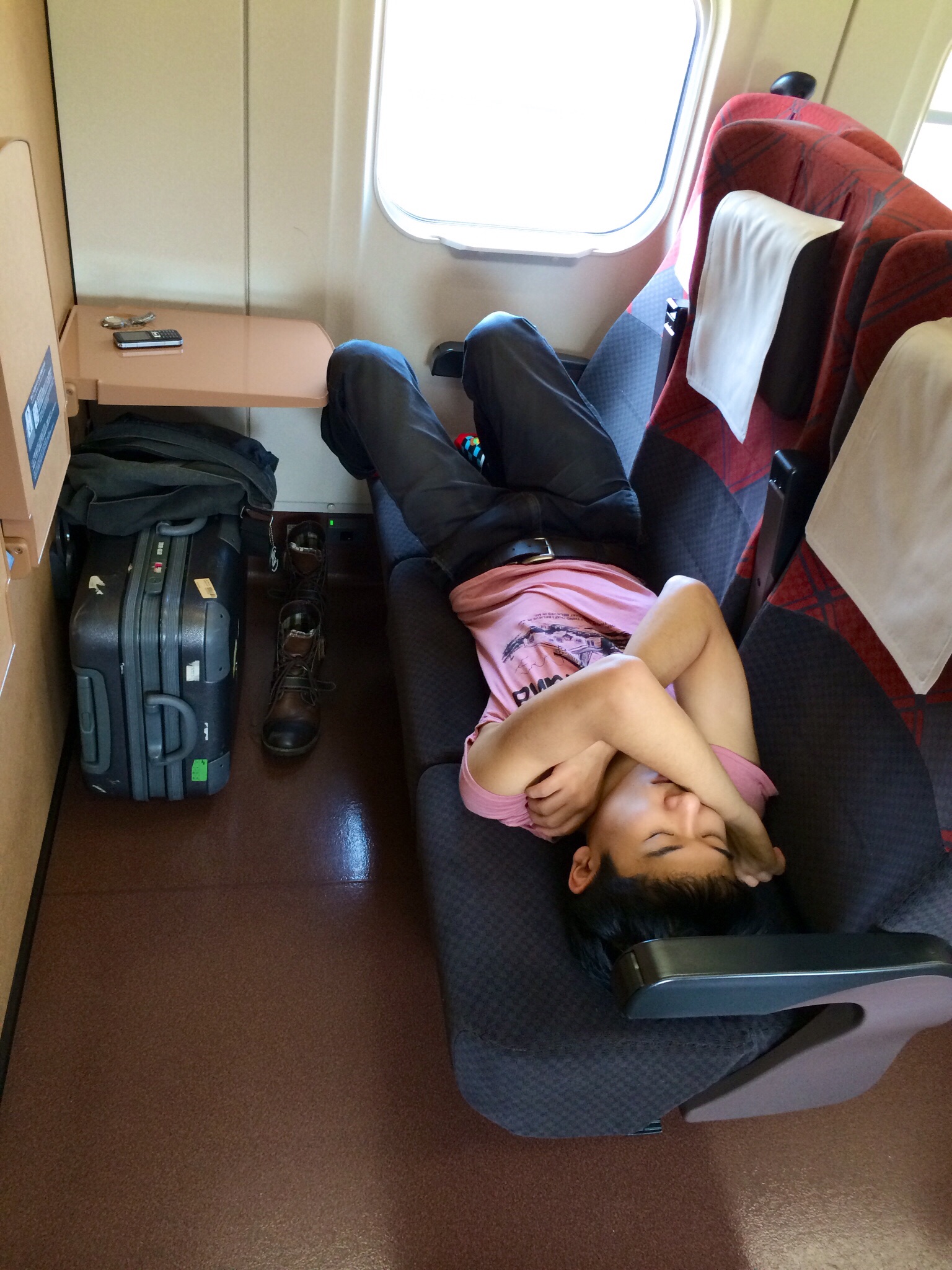帰りの新幹線(はくたか)糸魚川〜金沢の自由席は、3座席ごろ寝のVIP待遇です。筑豊