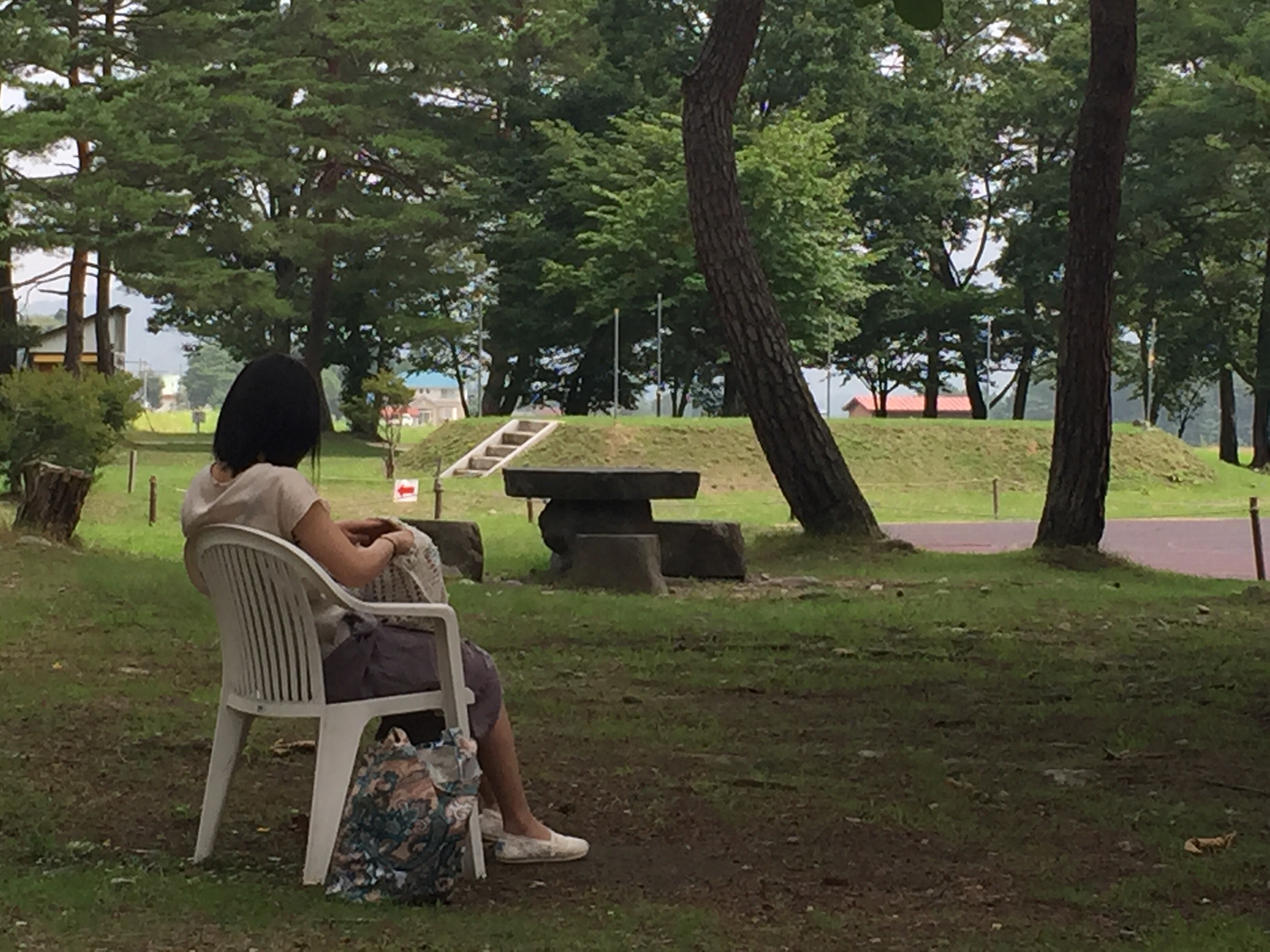 グリーンスポーツの森に着いて、優雅にくつろいでるなおみさん◡̈⃝
