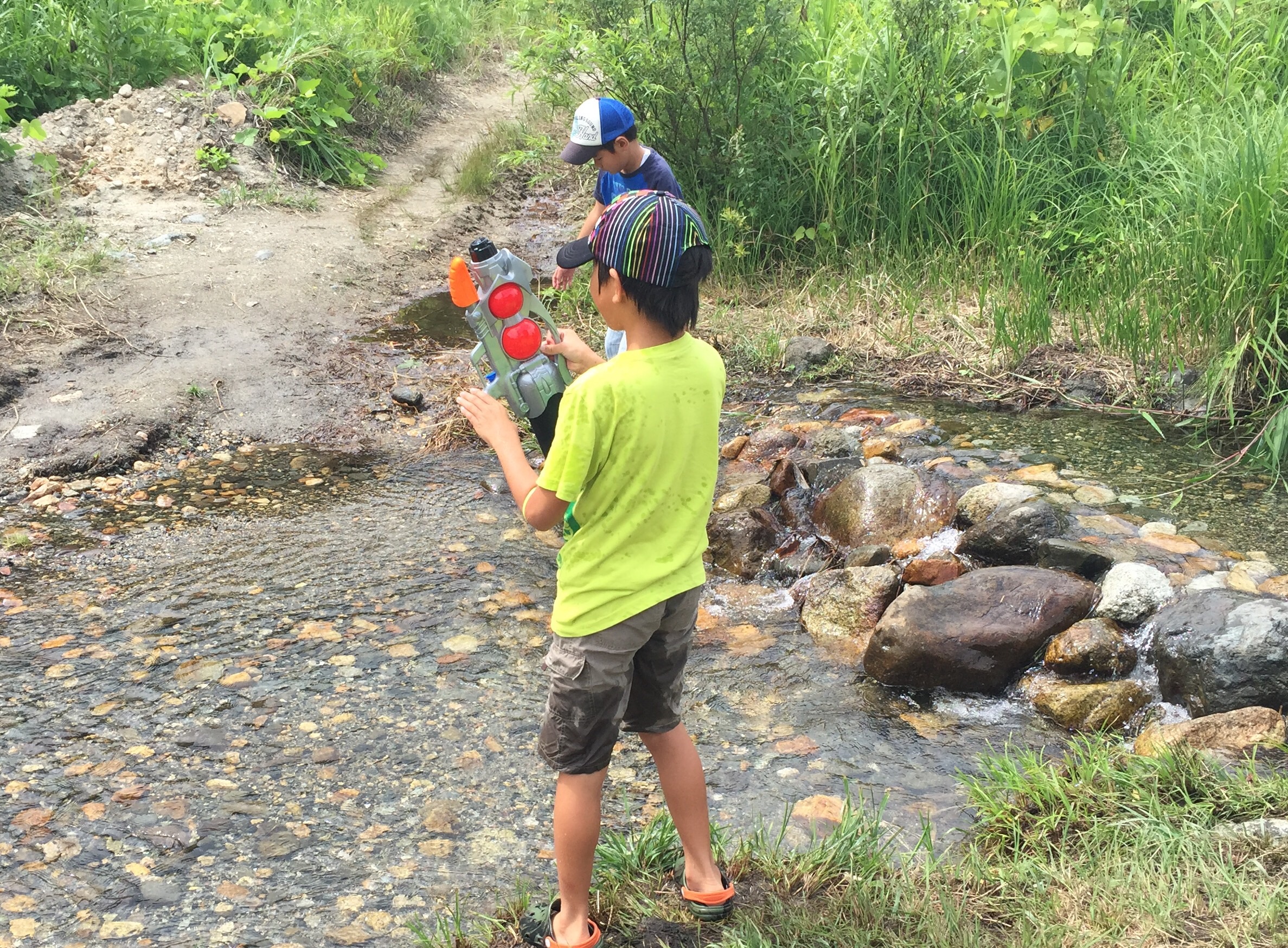 ゆうくんは昨日白馬のイオンで買った水鉄砲持ってますd(*・ω・*)b♪