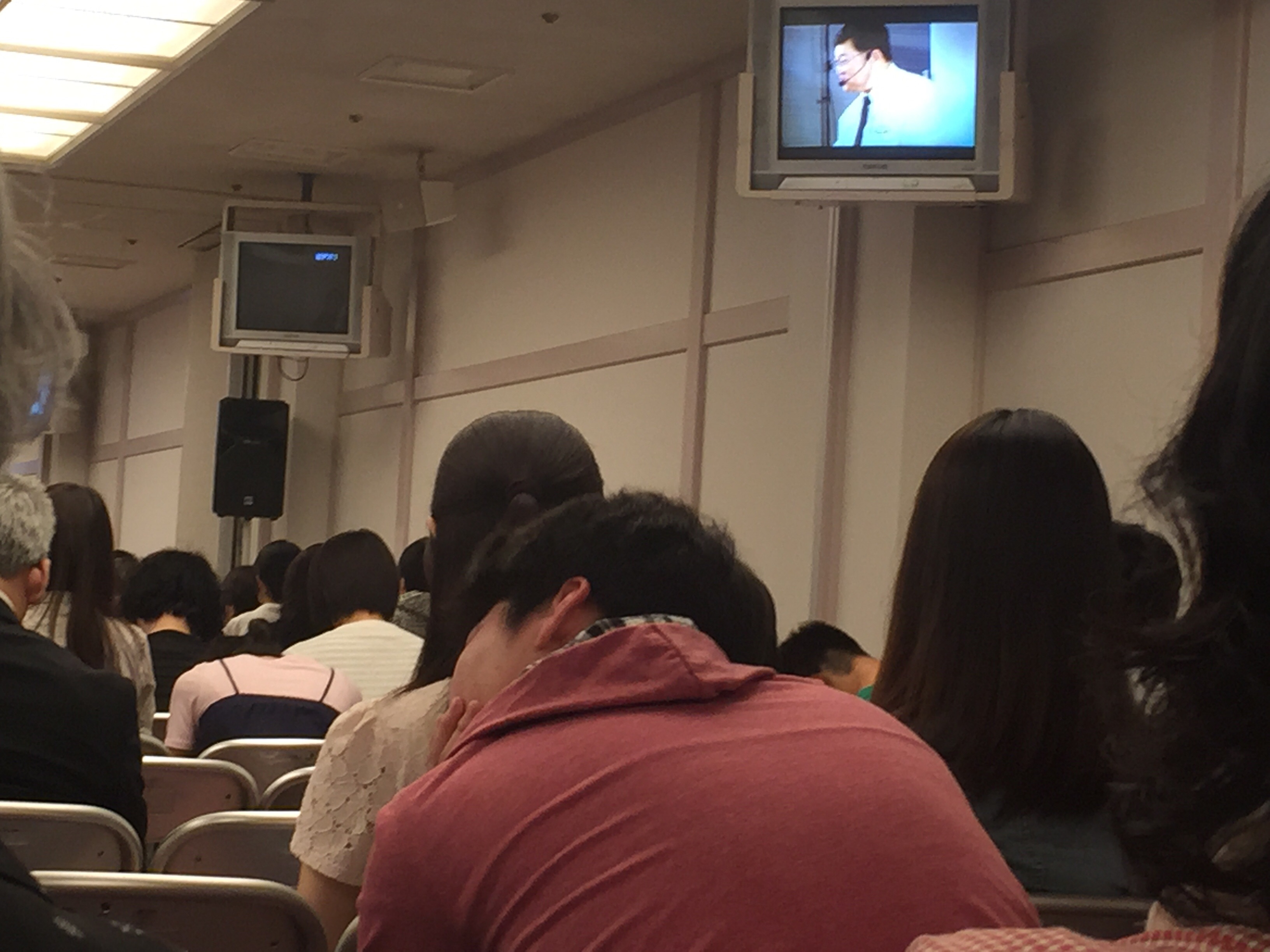 講壇が遠いです! モニターを見て話を聞きます(笑 前の方に座るには、早く会場に来なくてはいけません꒰•̀ᴗ•́꒱و ̑̑
