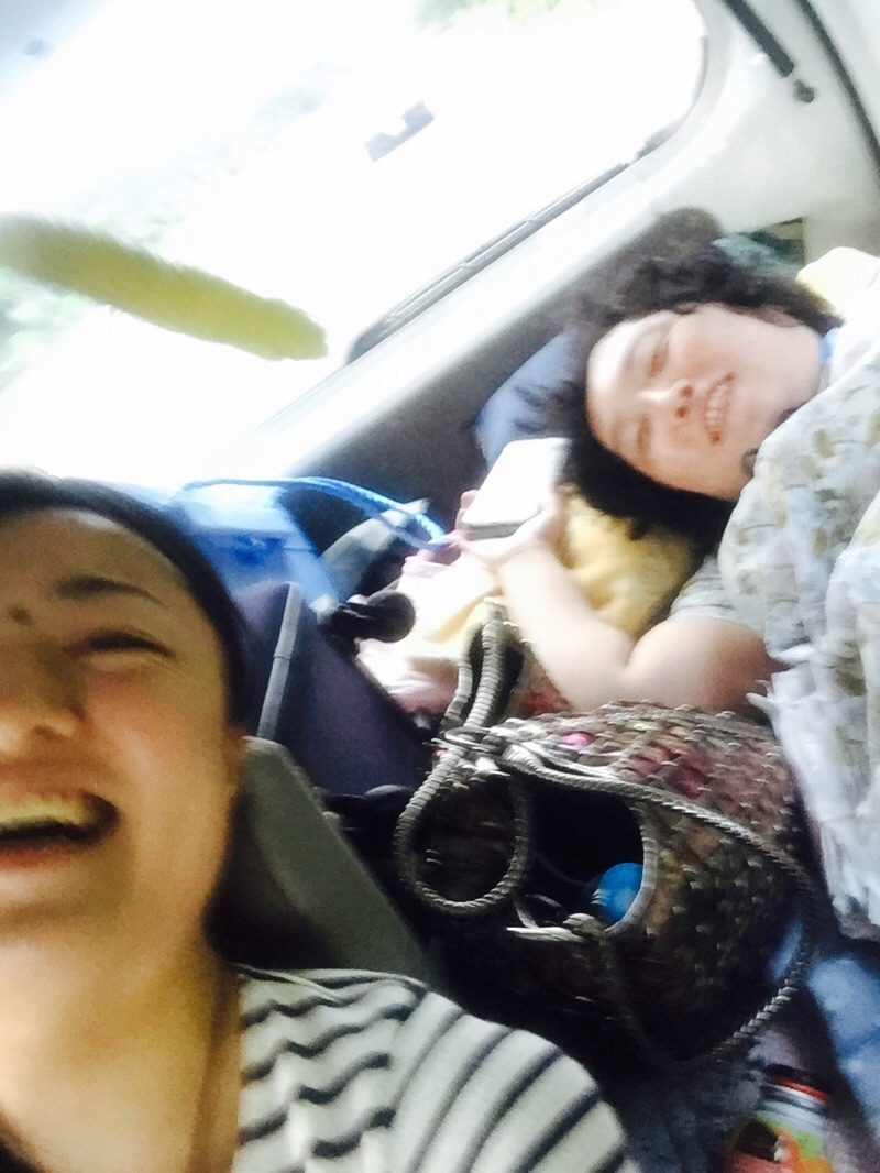 ひかりは車中でお昼寝中。