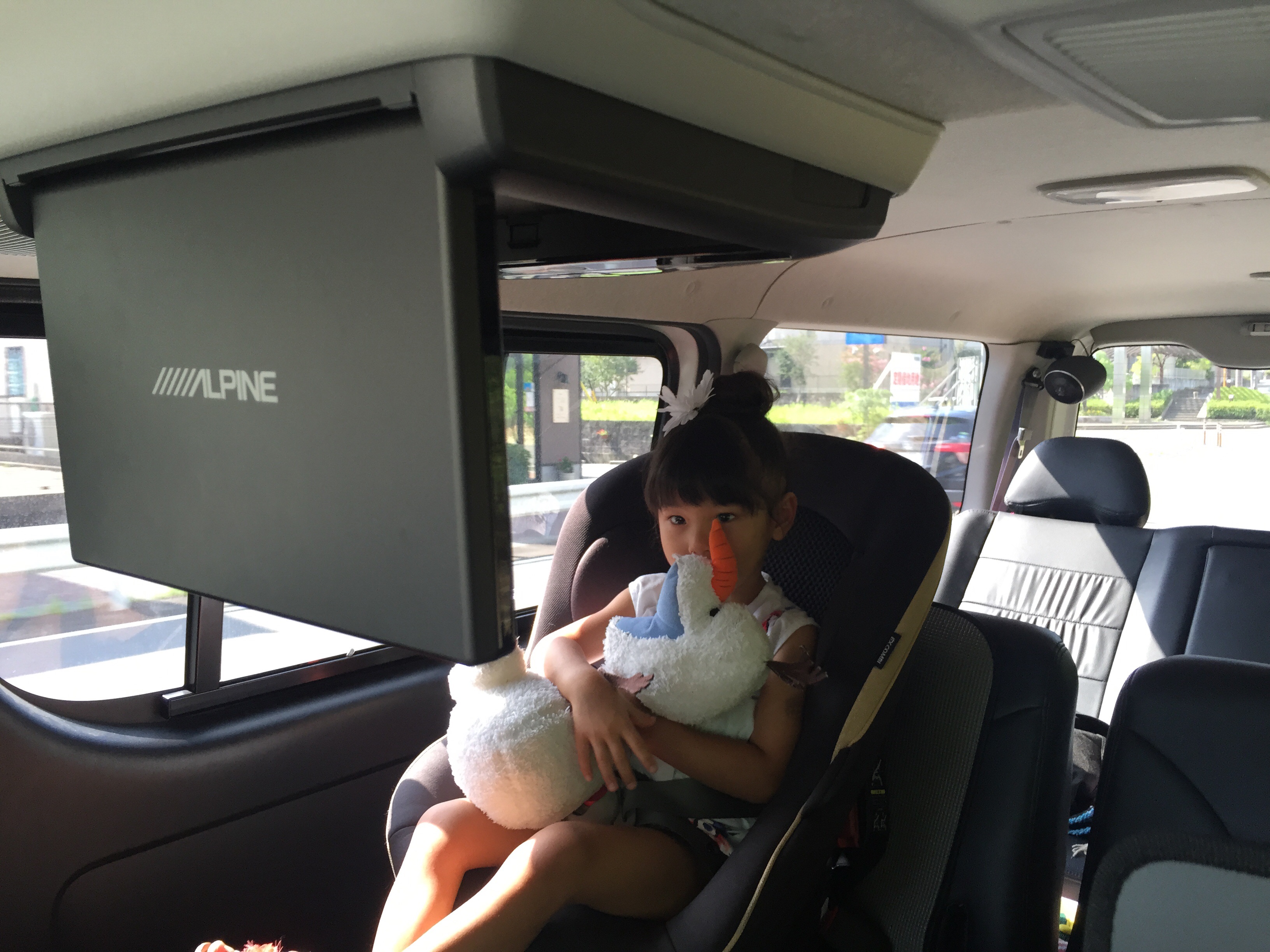 みーちゃんはトイストーリーを見ながら♫ 赤ちゃんの時から長距離移動は慣れっこ!!