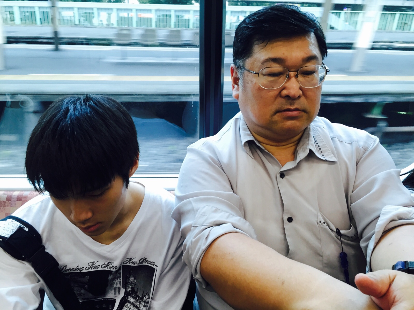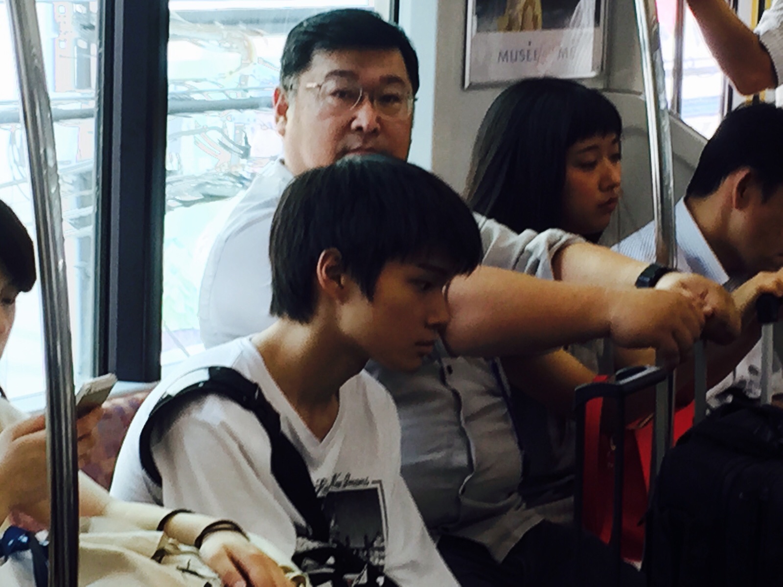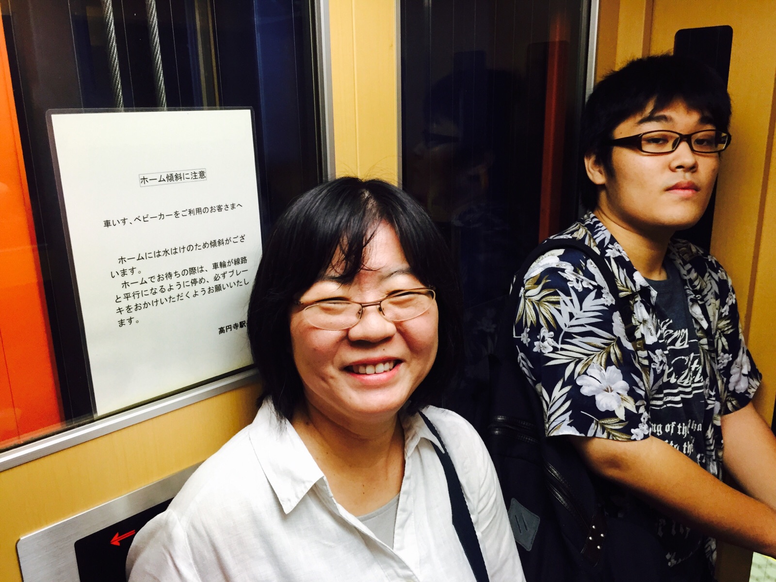 この二人が新宿で降ります!午前3:30の飛行機で沖縄を出てきたので、眠そうです!また白馬で会います! 沖縄エルサレム