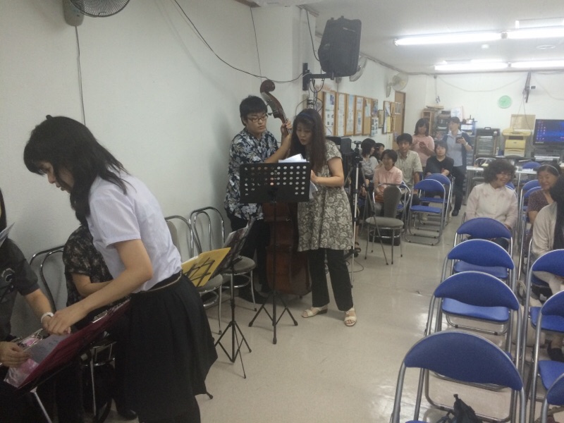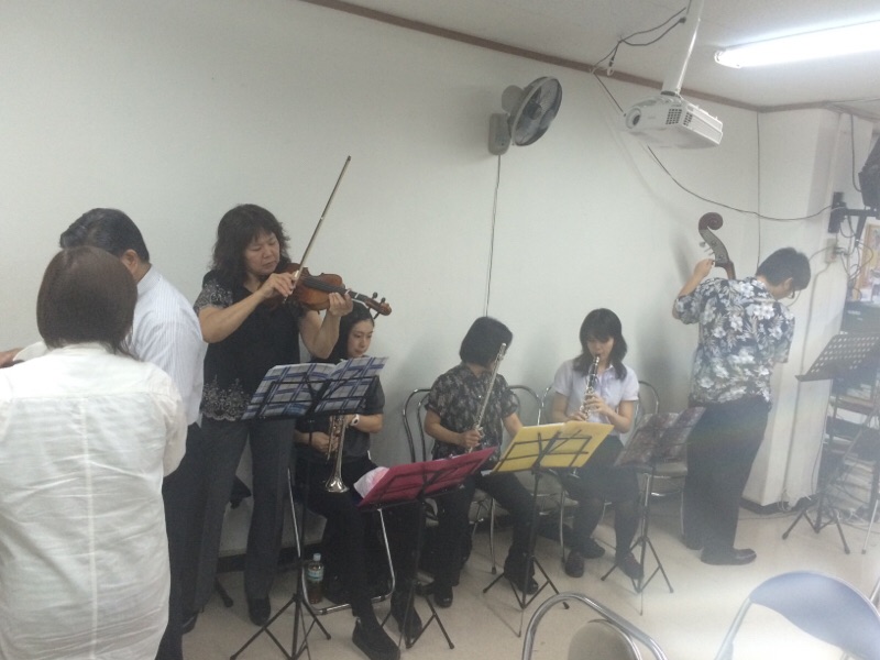皆さん、準備しておられます! 永藤ジュニアのヨシュアくん! コントラバスを弾いてますね!