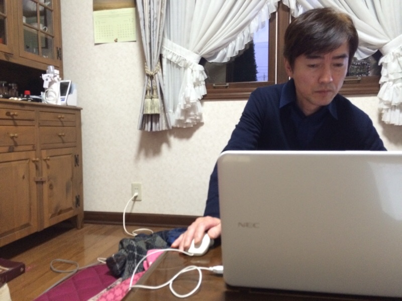 二人ともパソコンに向かって…作業中! 同じパソコンのようですが…! amagai