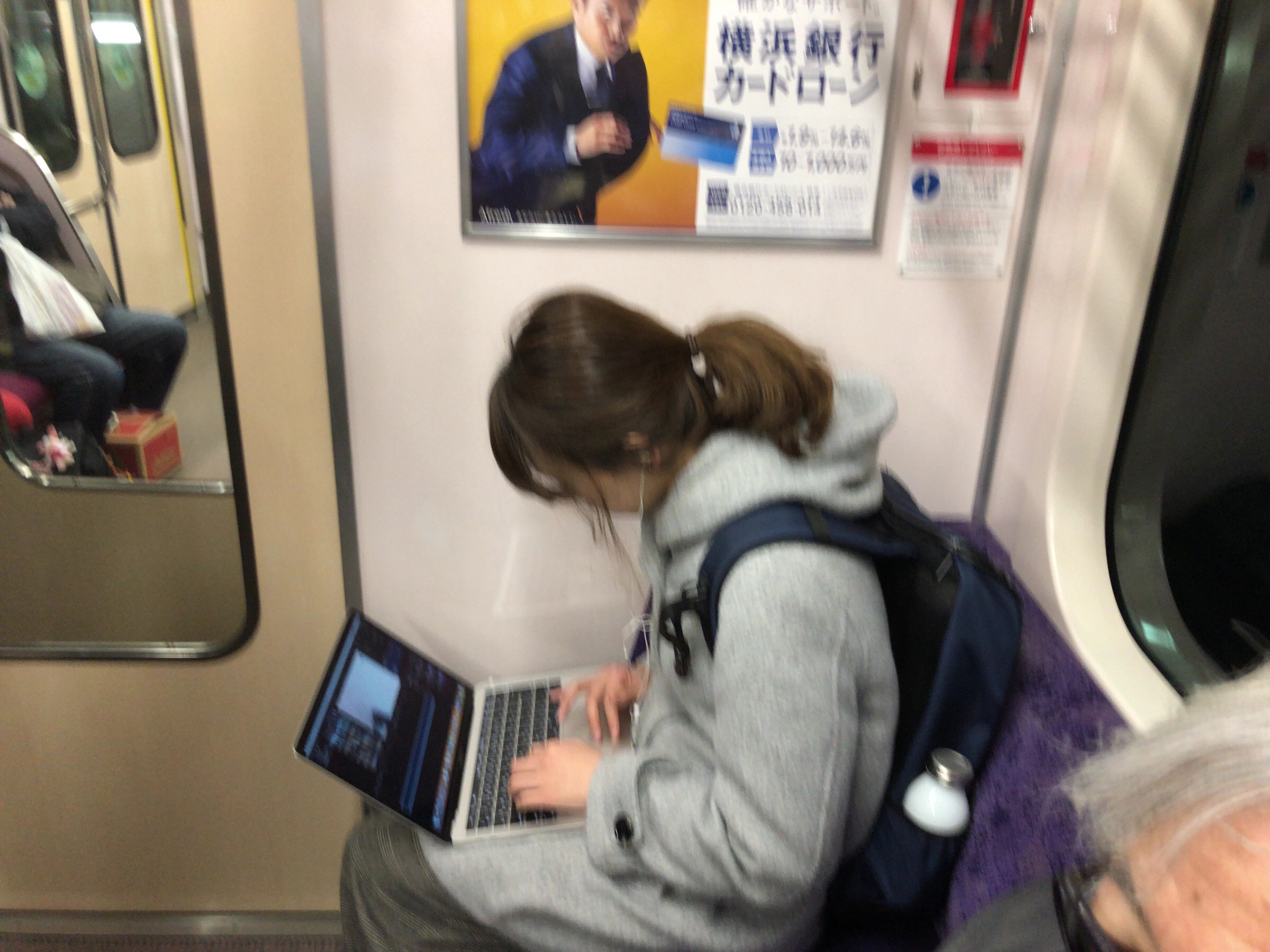 乗り換えました。遠慮しつつりょうこちゃん、映像作業。わた