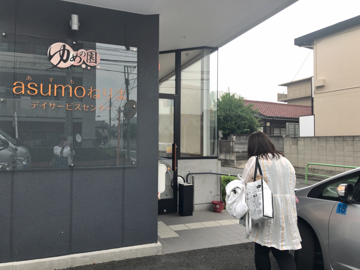 お迎えの車で、施設に向かいます。今日の利用者さんは14名いらっしゃるそうです。お会いするのが楽しみです。