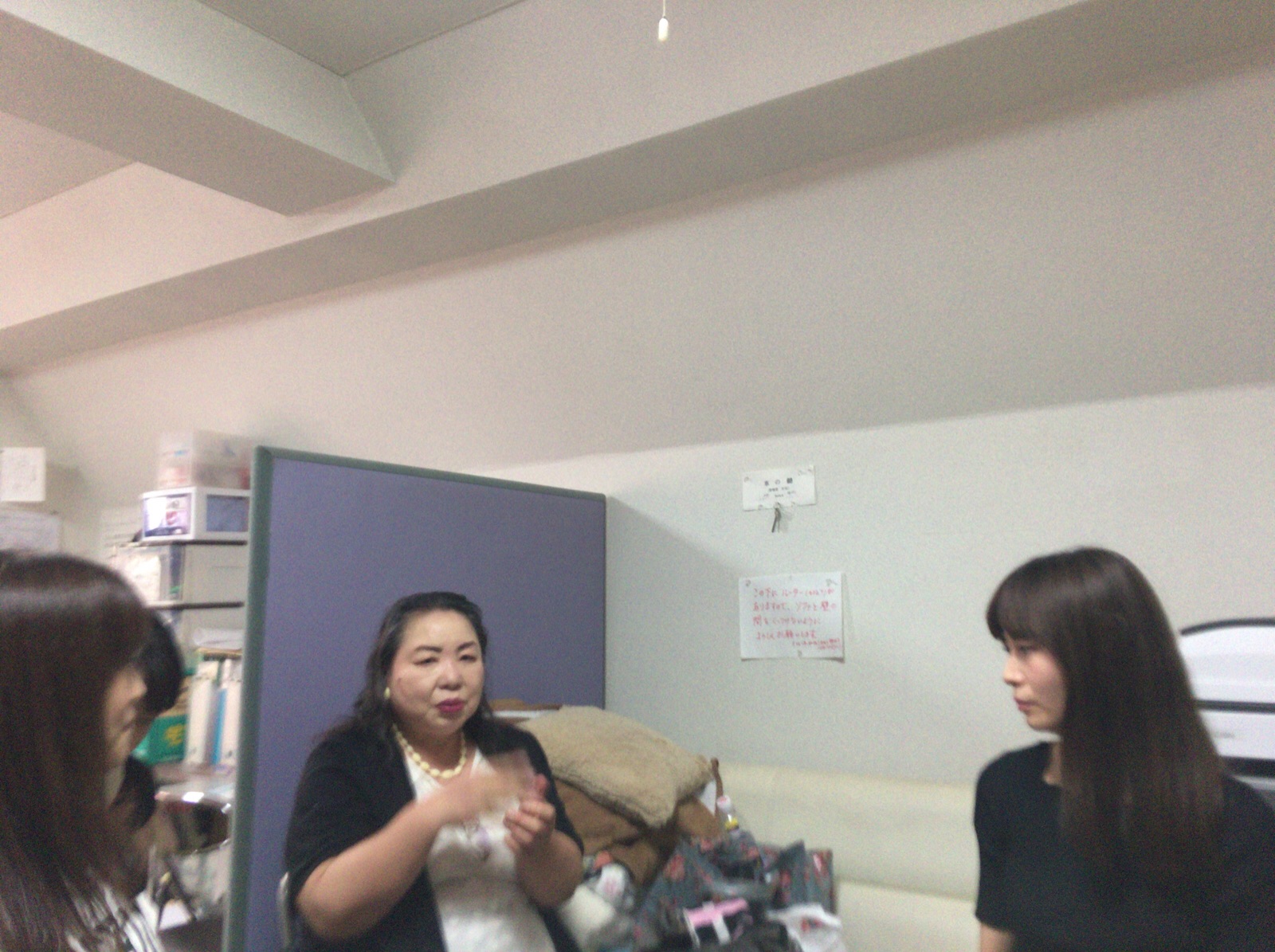短く、今日のいやしの集いのための打ち合わせです。責任者のまどかさんがお話しされています♪