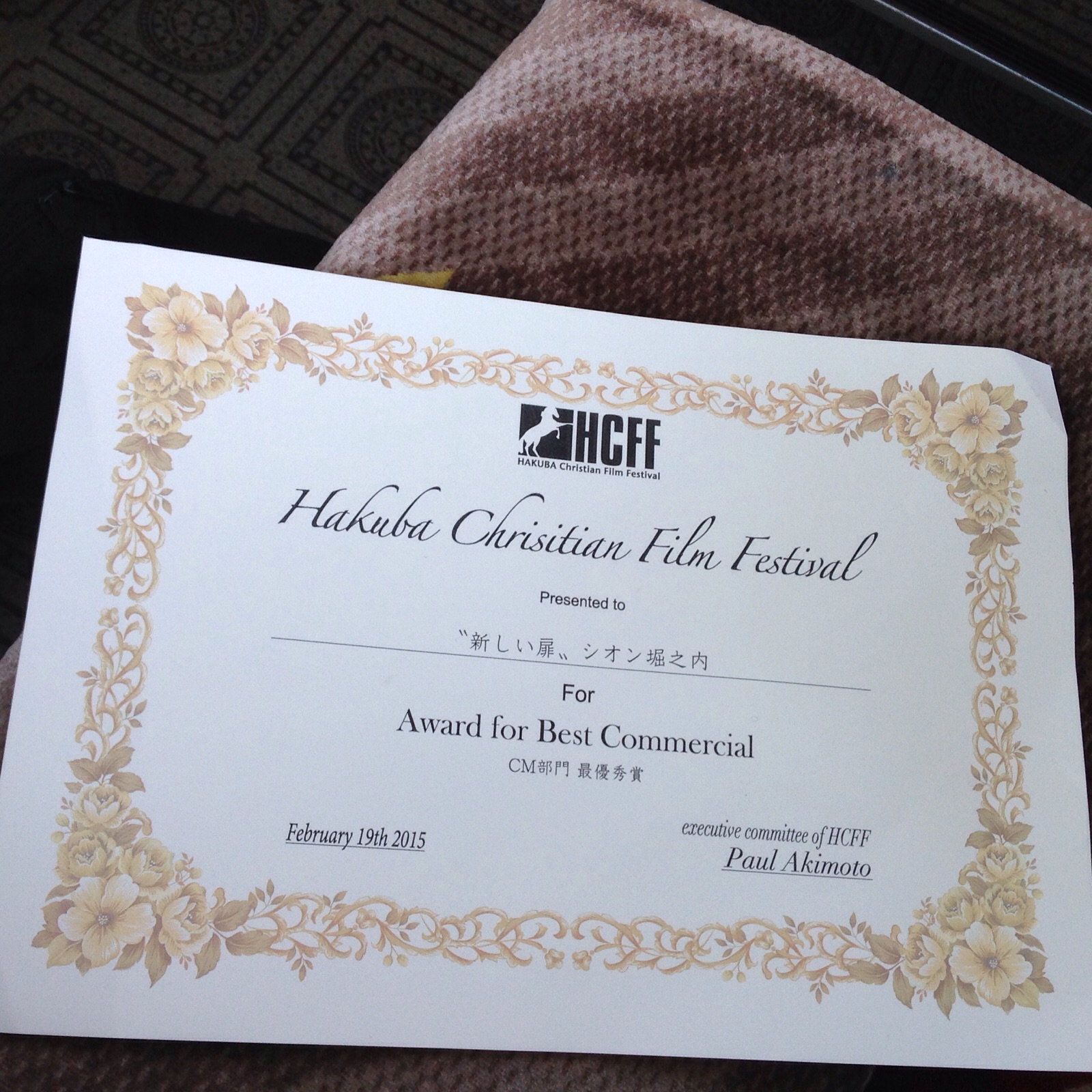 昨日白紙だった白馬映像祭の賞状の完成版です(笑)d(^_^)
